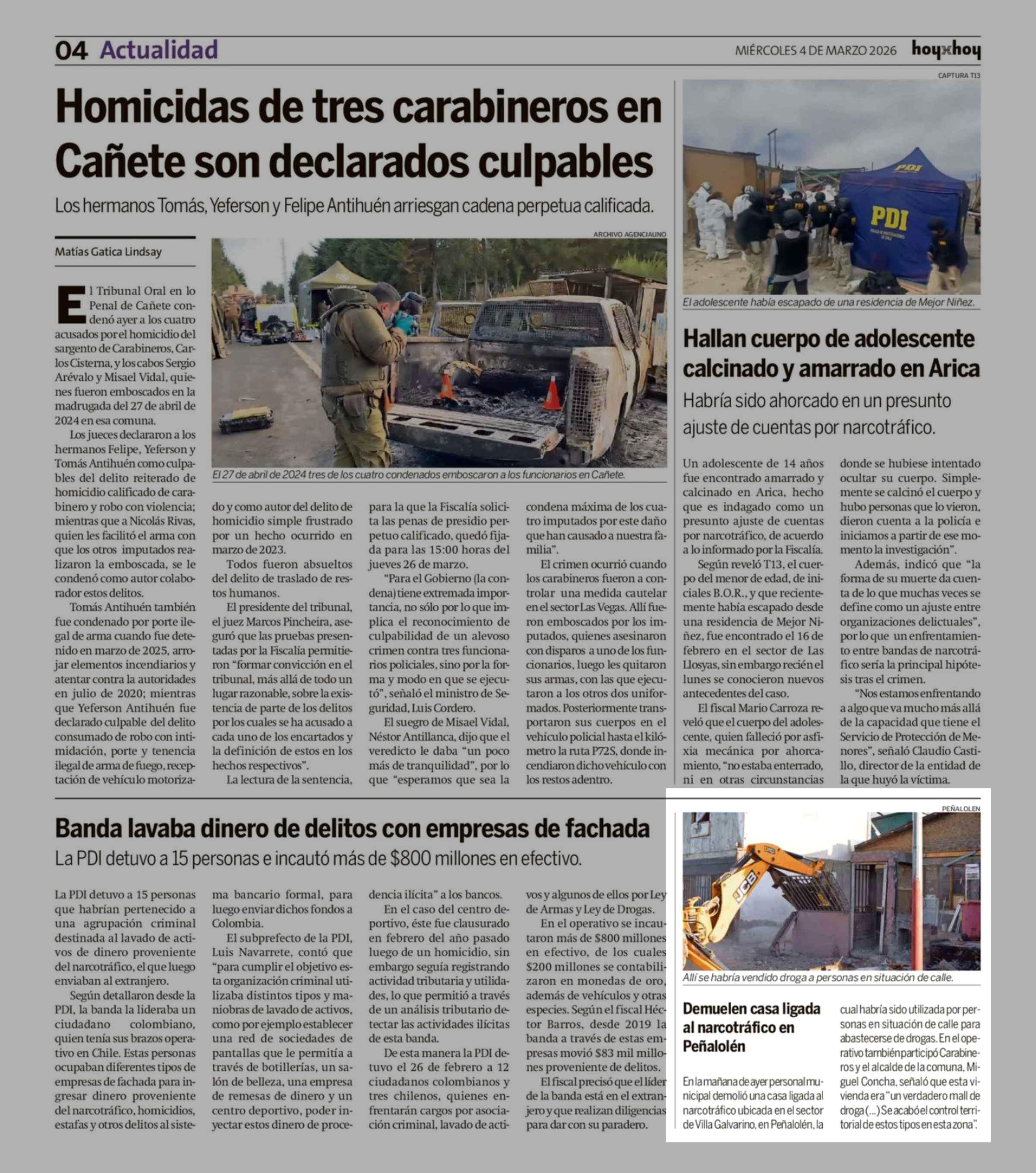 | Título: | Demuelen casa ligada al narcotráfico en Peñalolén |