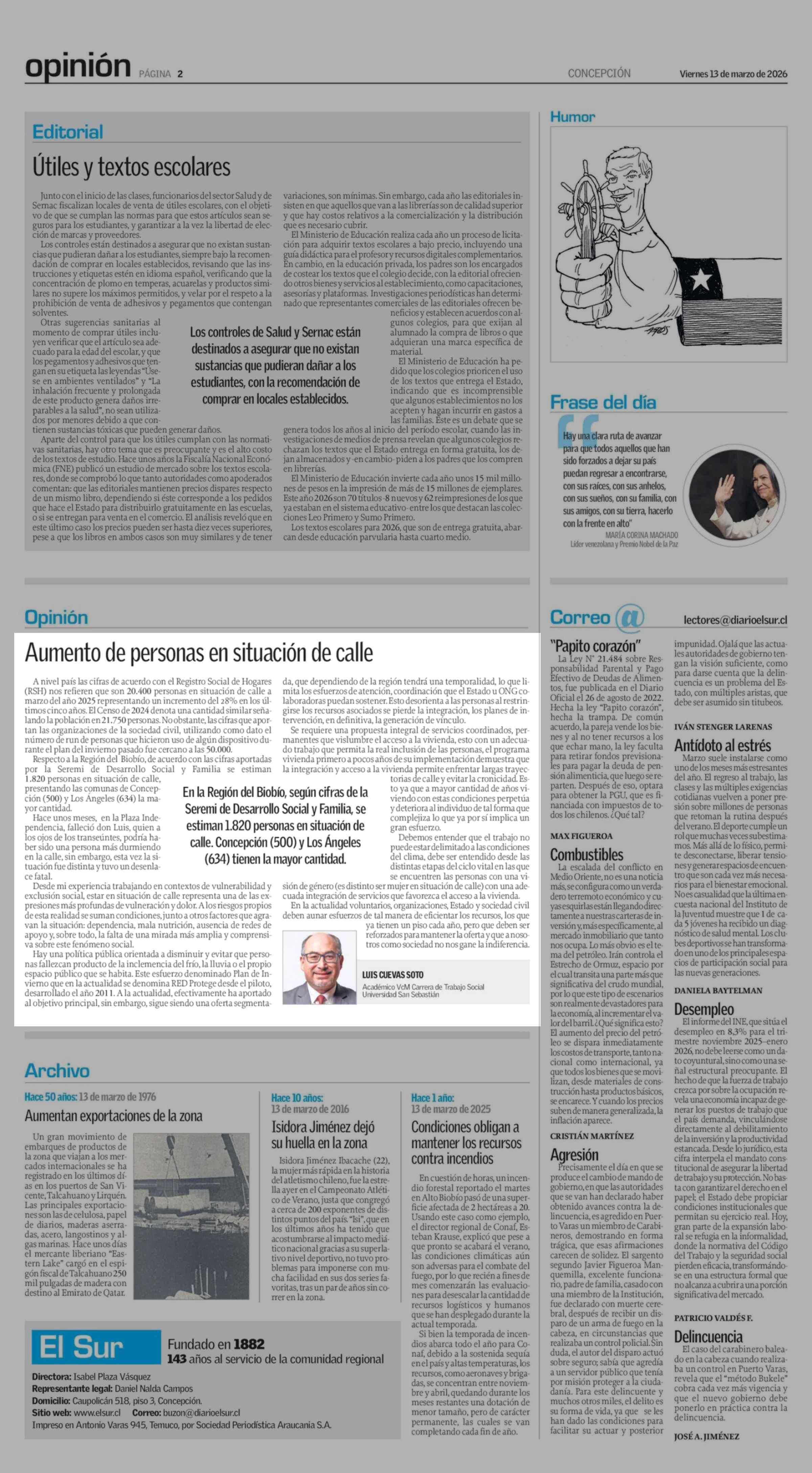 Fecha: 13-03-2026 Sector: Columnas de Opinión Región: Región del Bío-Bío