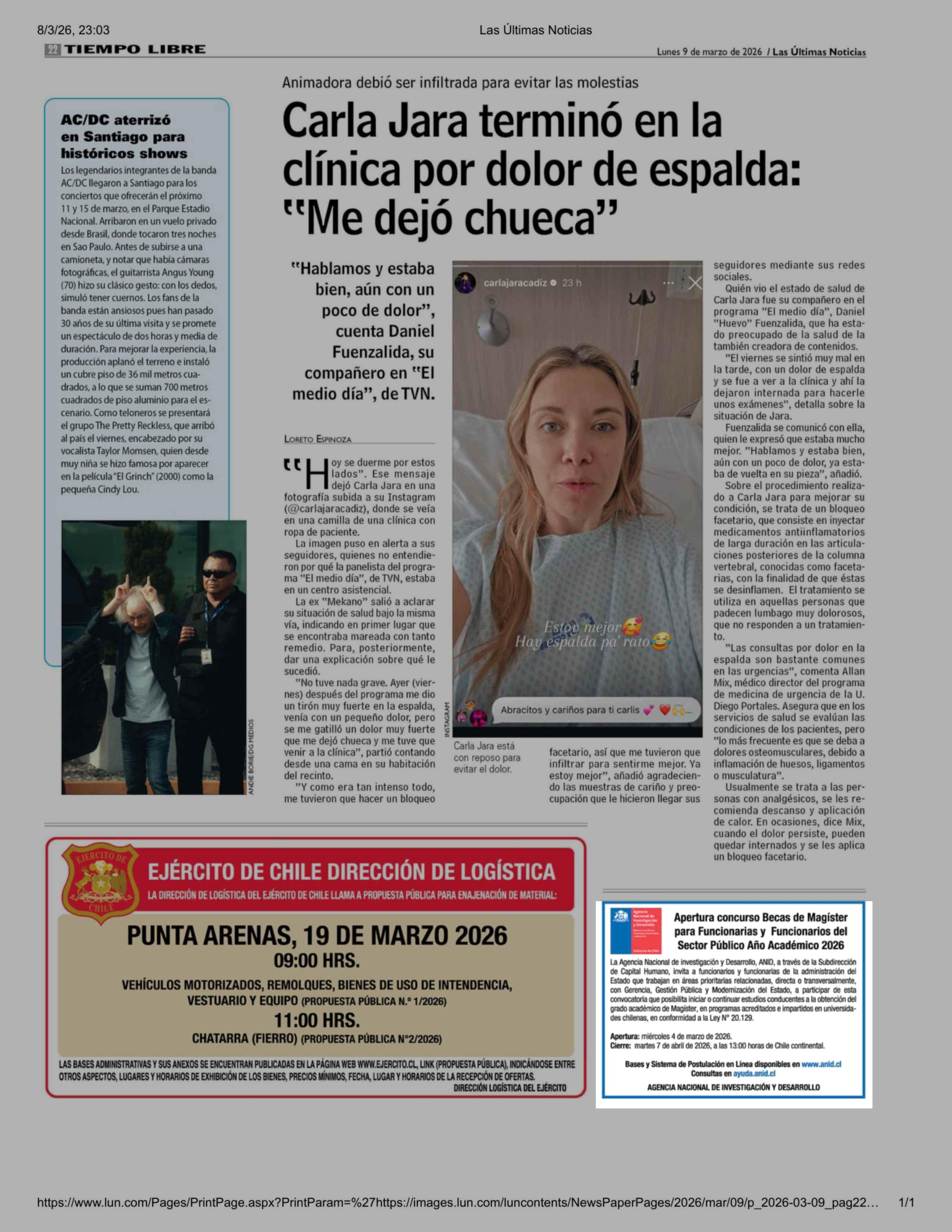 AVISO LICITACIONES: Apertura concurso Becas de Magister para Funcionarias y Funcionarios del Sector Público Año Académico 2026 09-03-2026 Las Últimas Noticias |