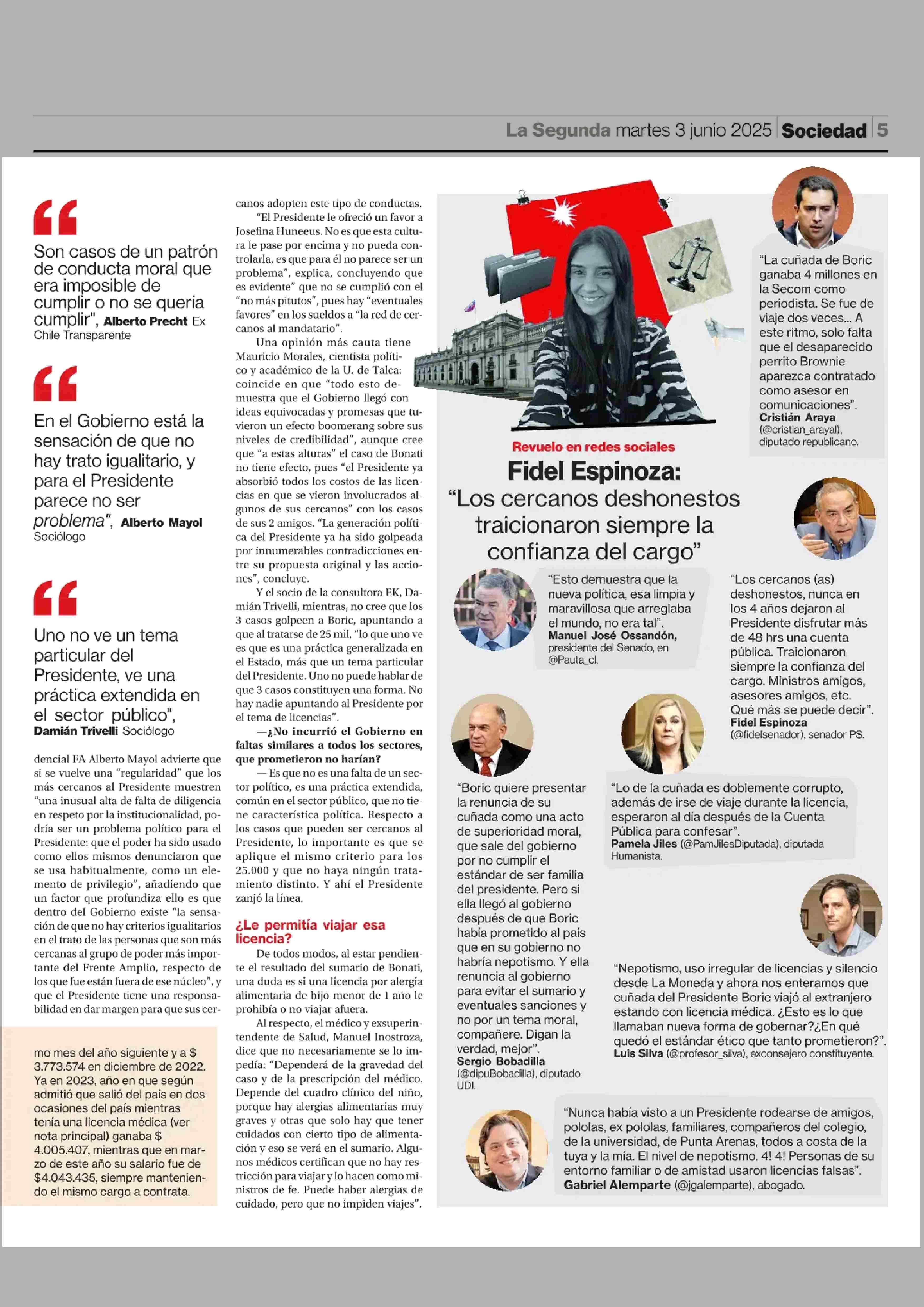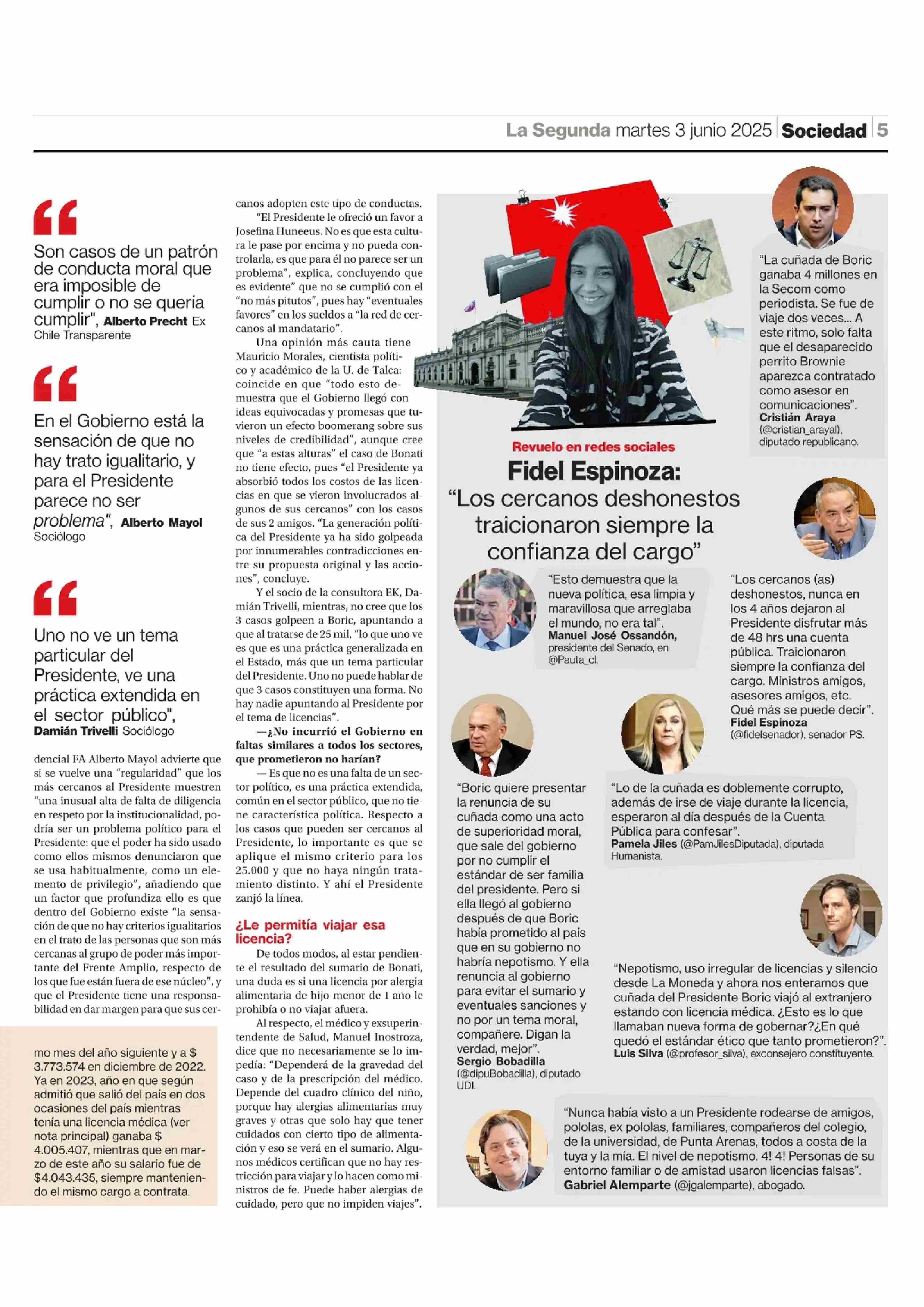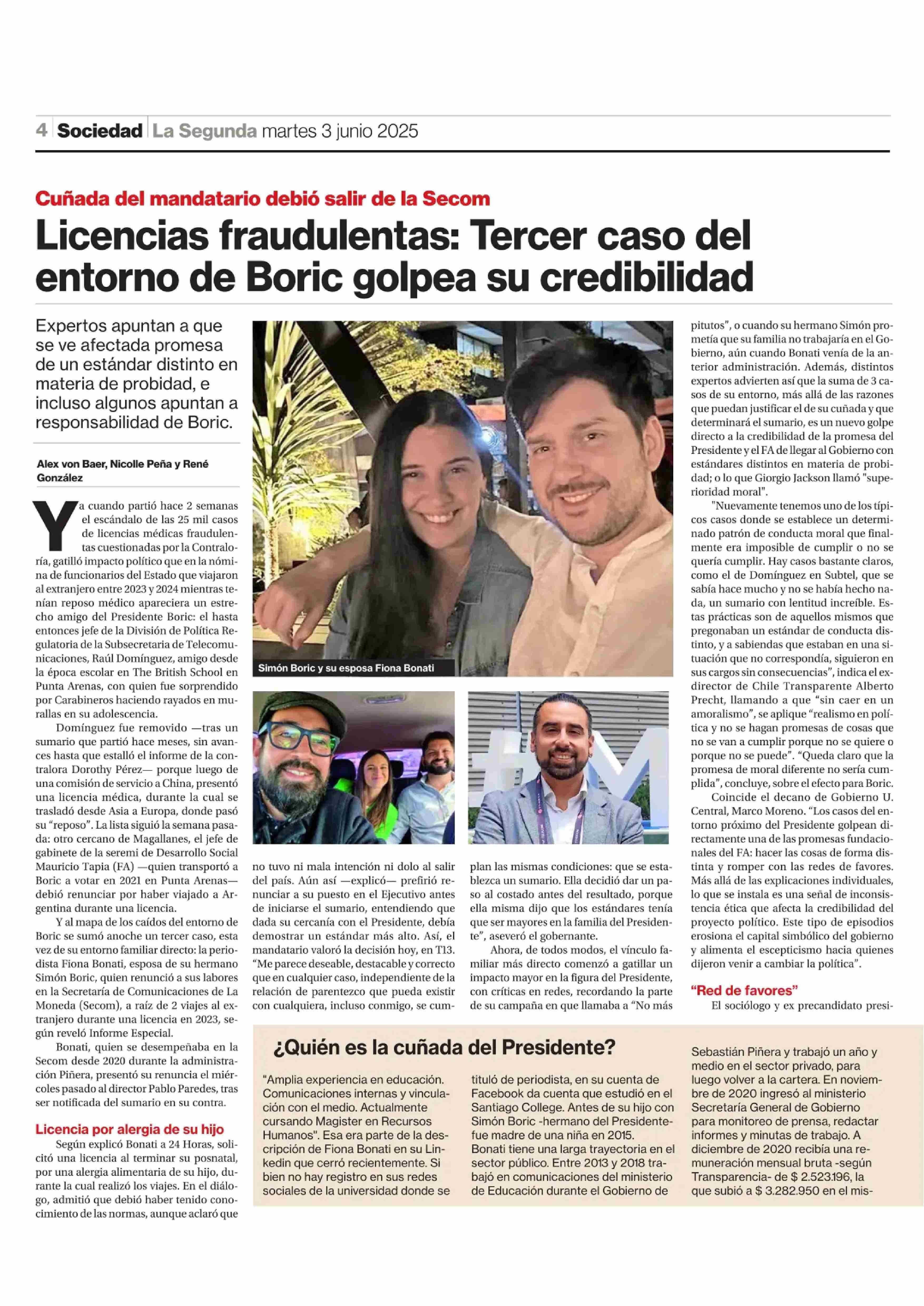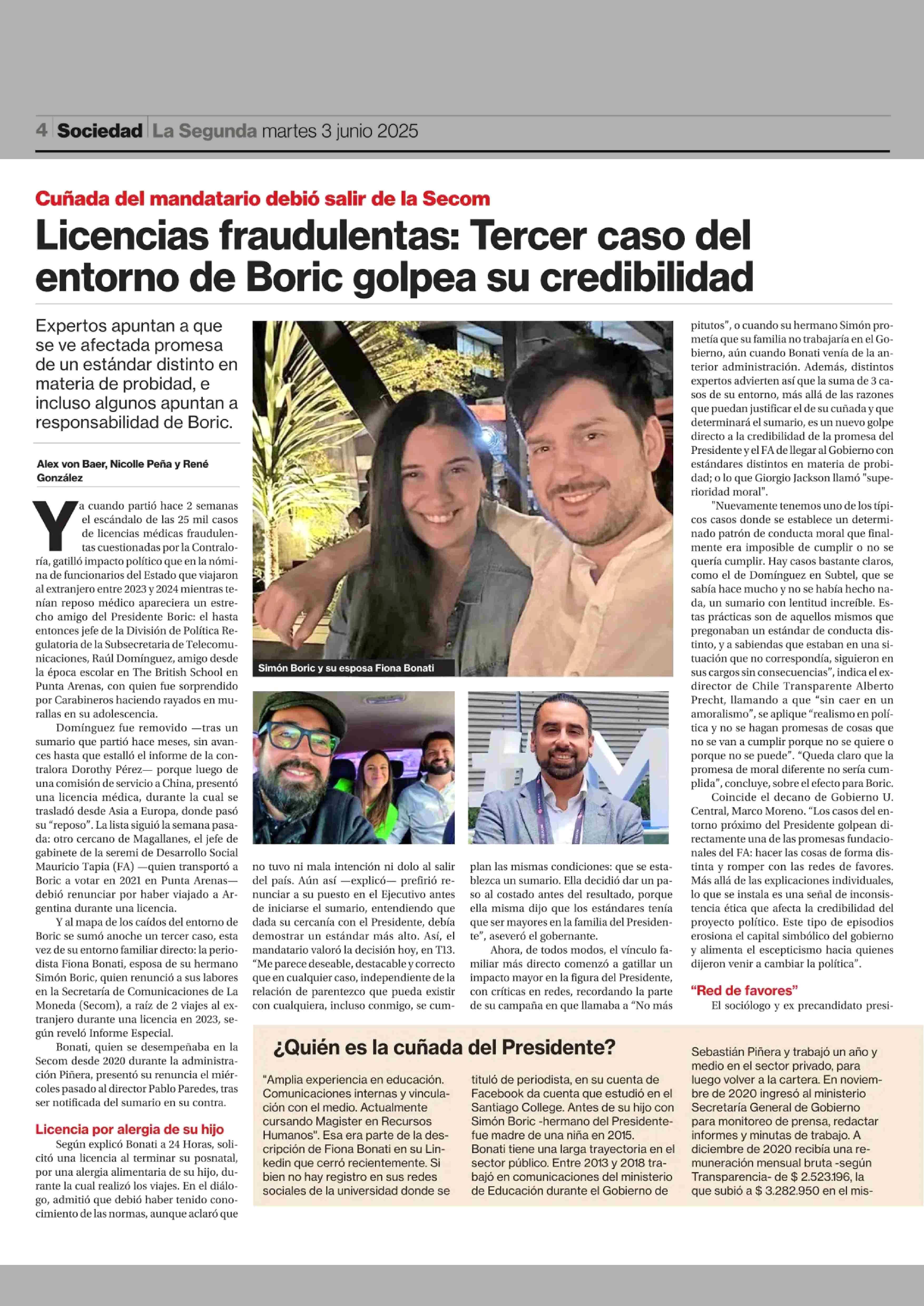 Licencias fraudulentas: Tercer caso del entorno de Boric golpea su credibilidad 03-06-2025 La Segunda |
