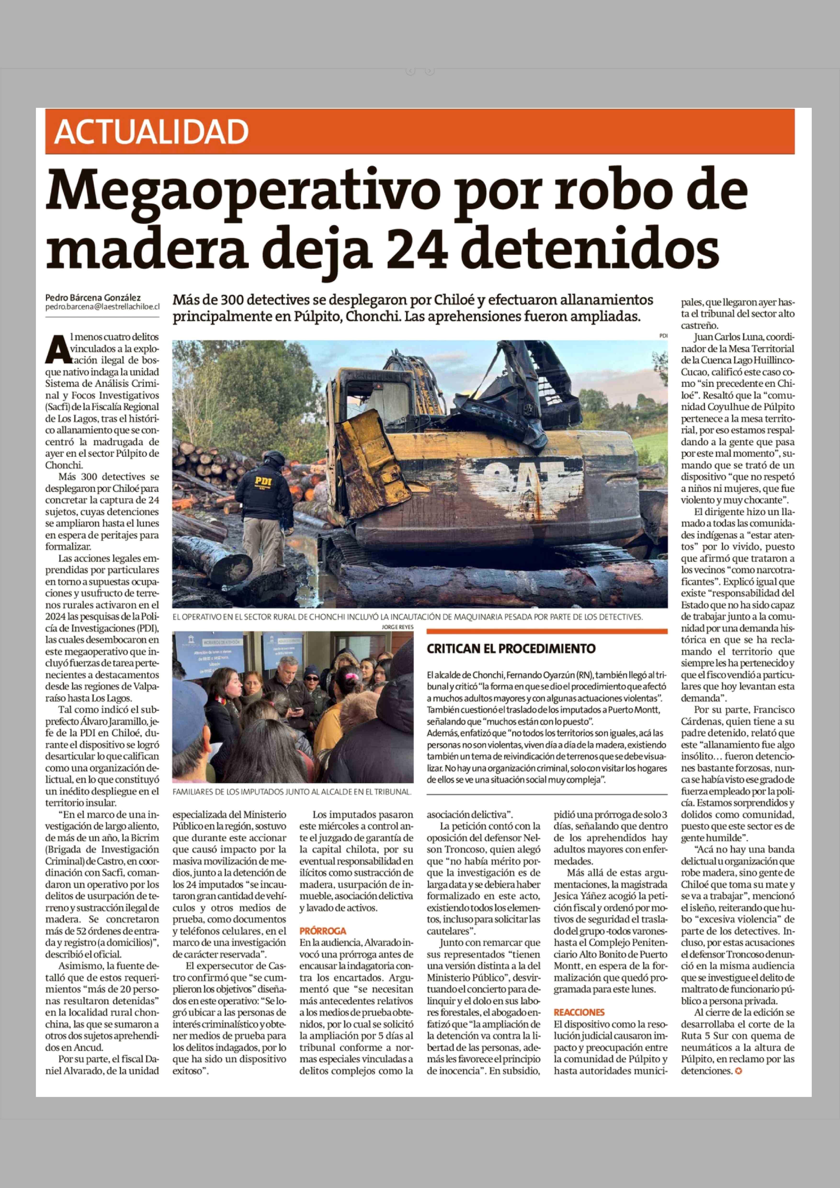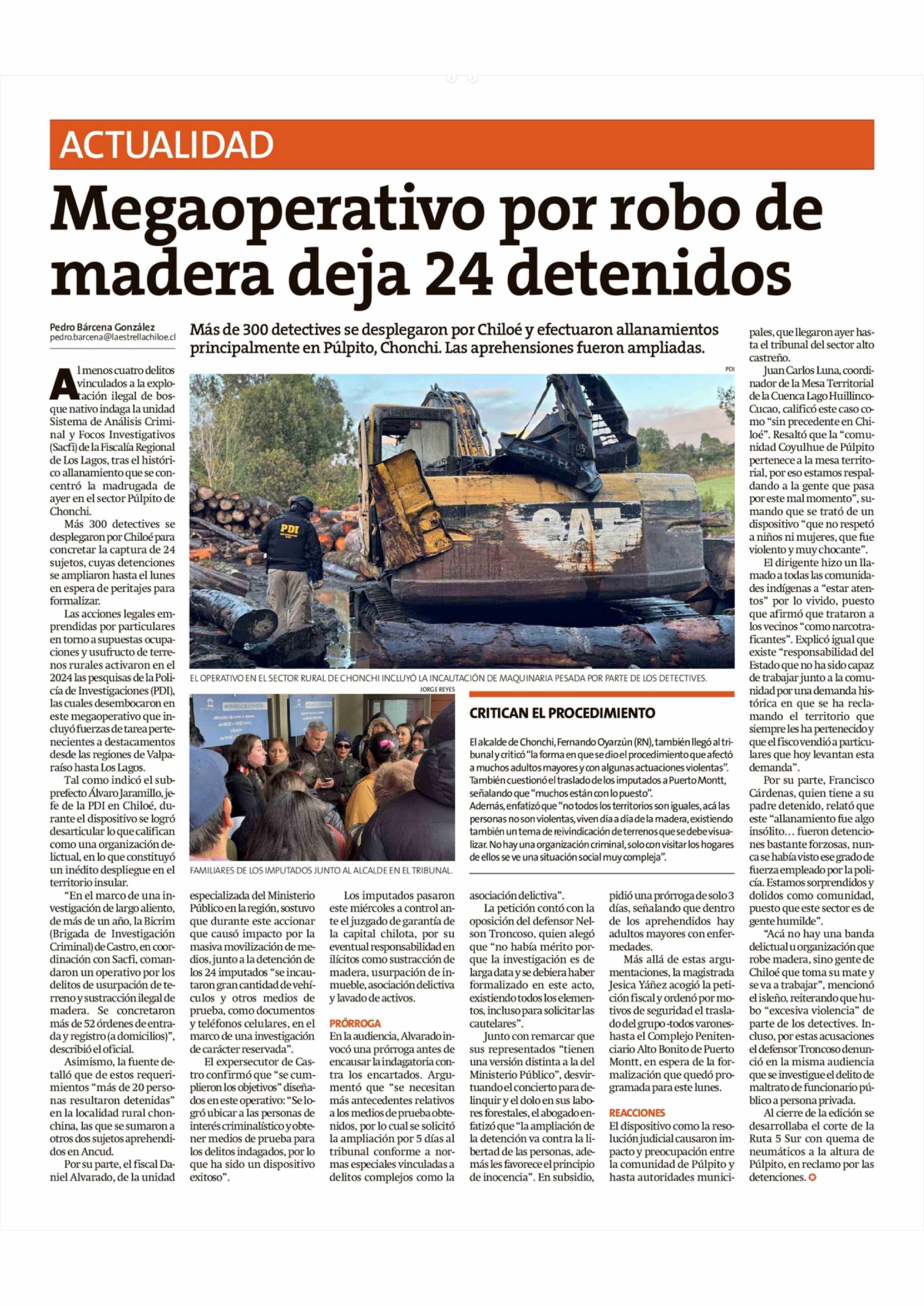 Título: Megaoperativo por robo de madera deja 24 detenidos