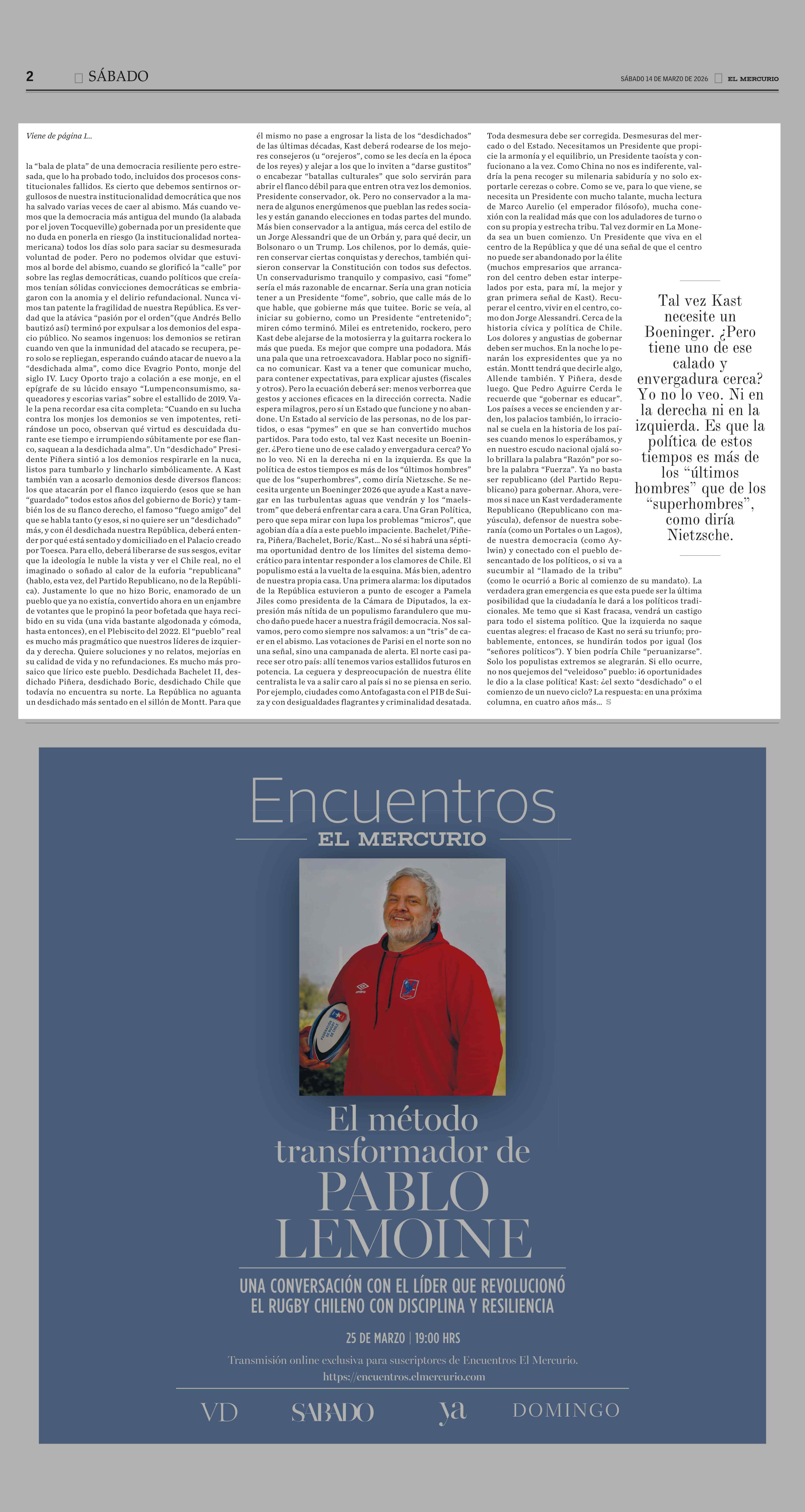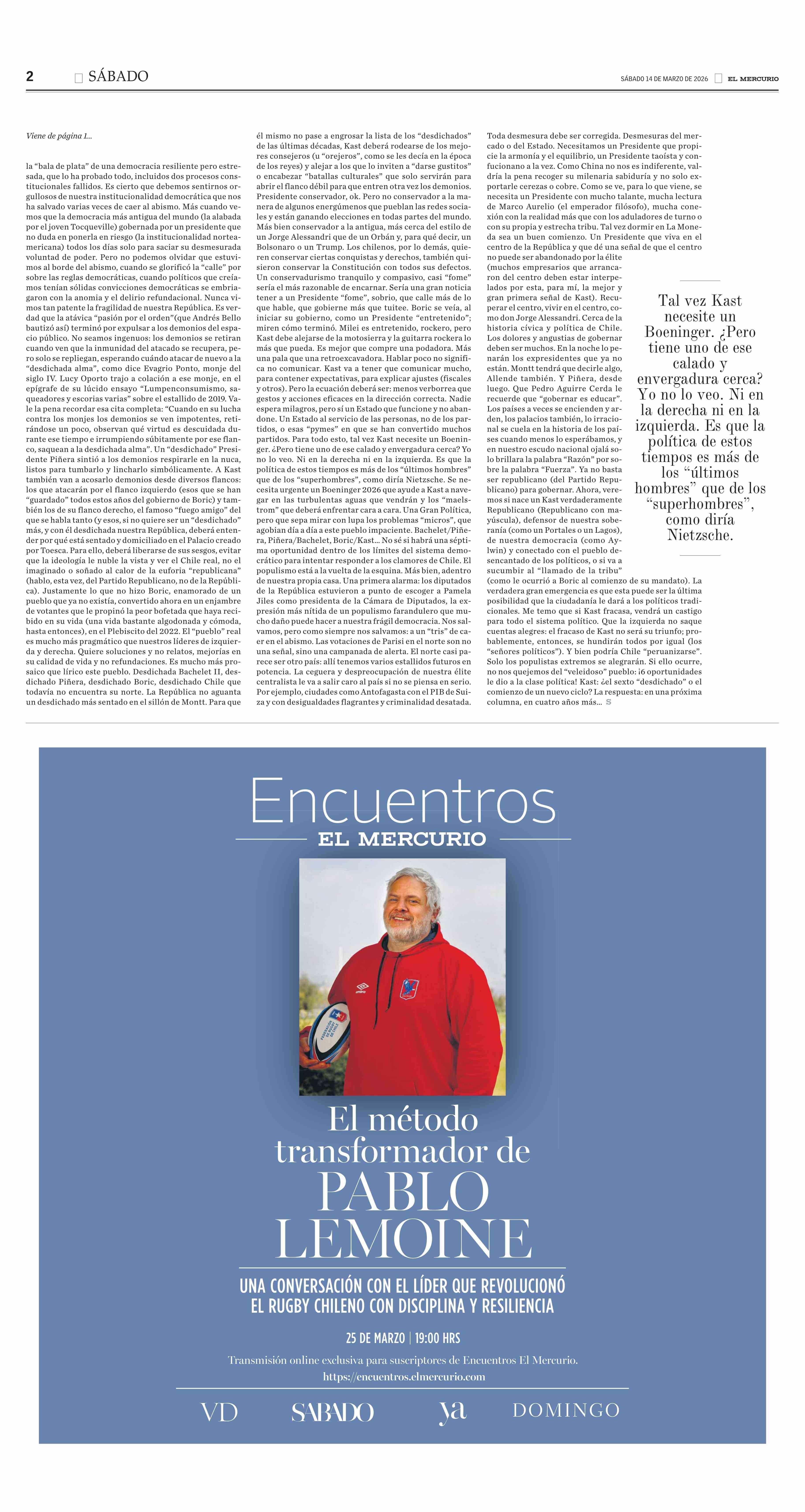 | Fuente: | El Mercurio (El Mercurio - Sábado) | Página(s): | 2 |