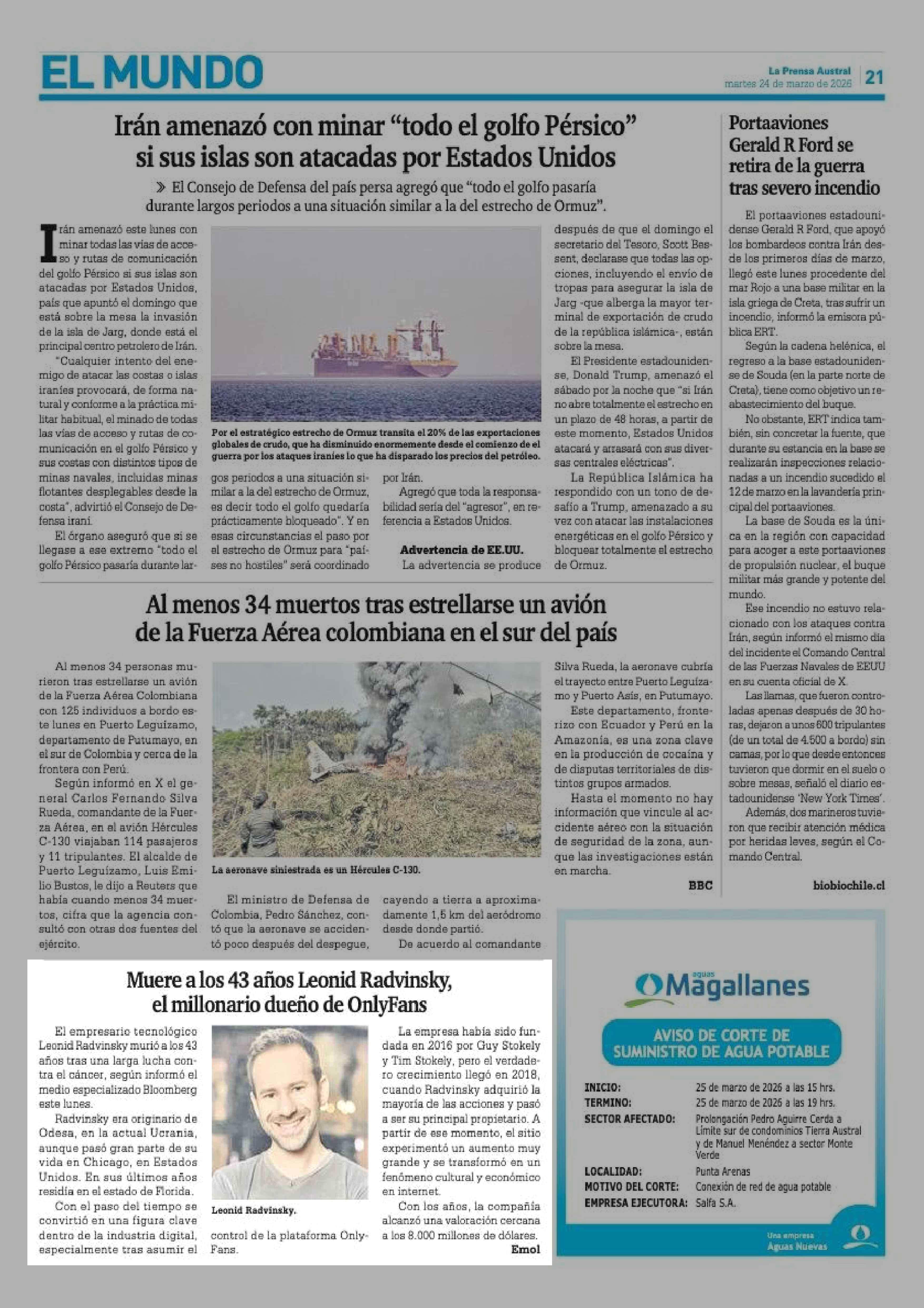 | Fecha: | 24-03-2026 | Sector: | Noticia general | Región: | Región de Magallanes y de la Antártica Chilena |
