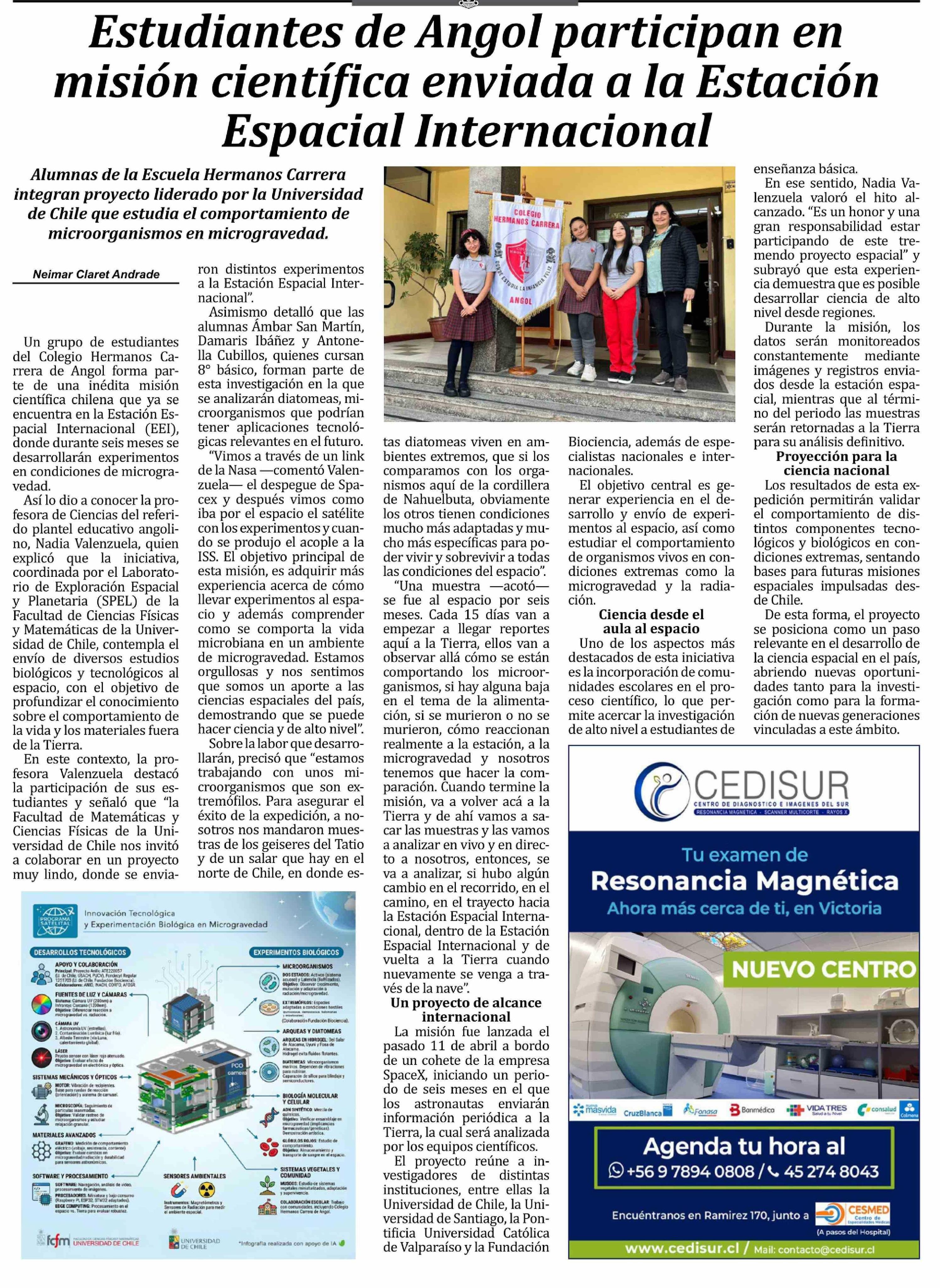 Título: Estudiantes de Angol participan en misión científica enviada a la Estación Espacial Internacional