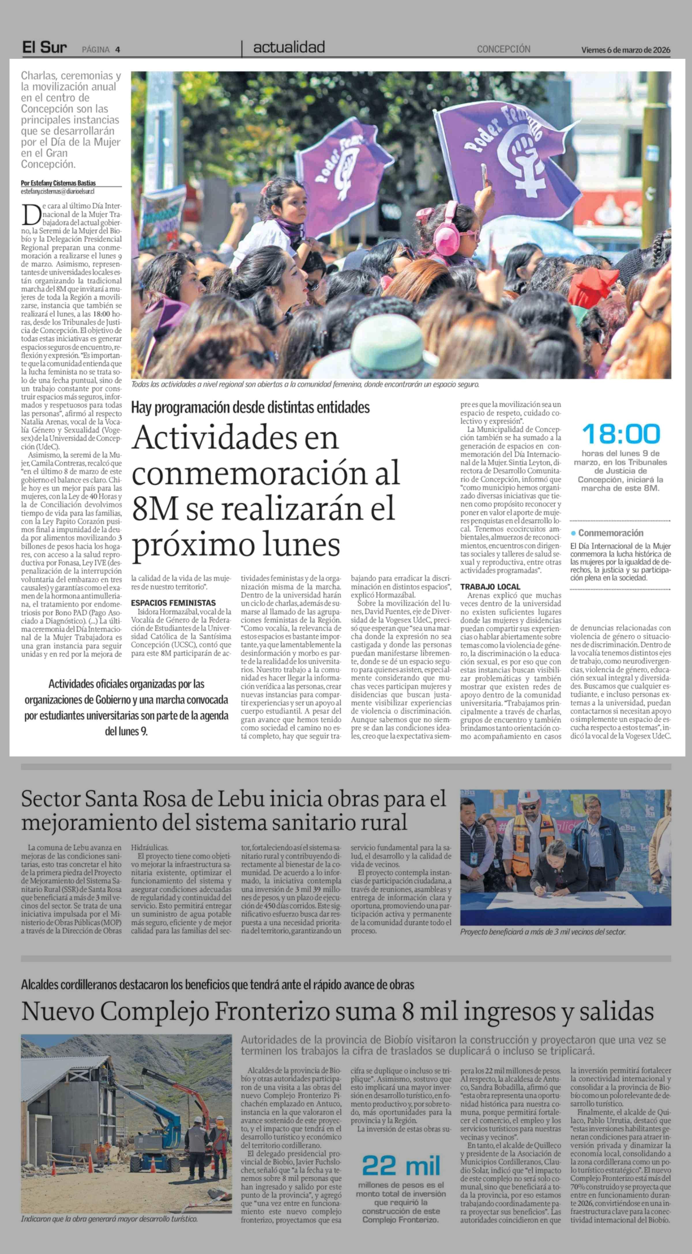 Actividades en conmemoración al 8M se realizarán el próximo lunes 06-03-2026 El Sur |