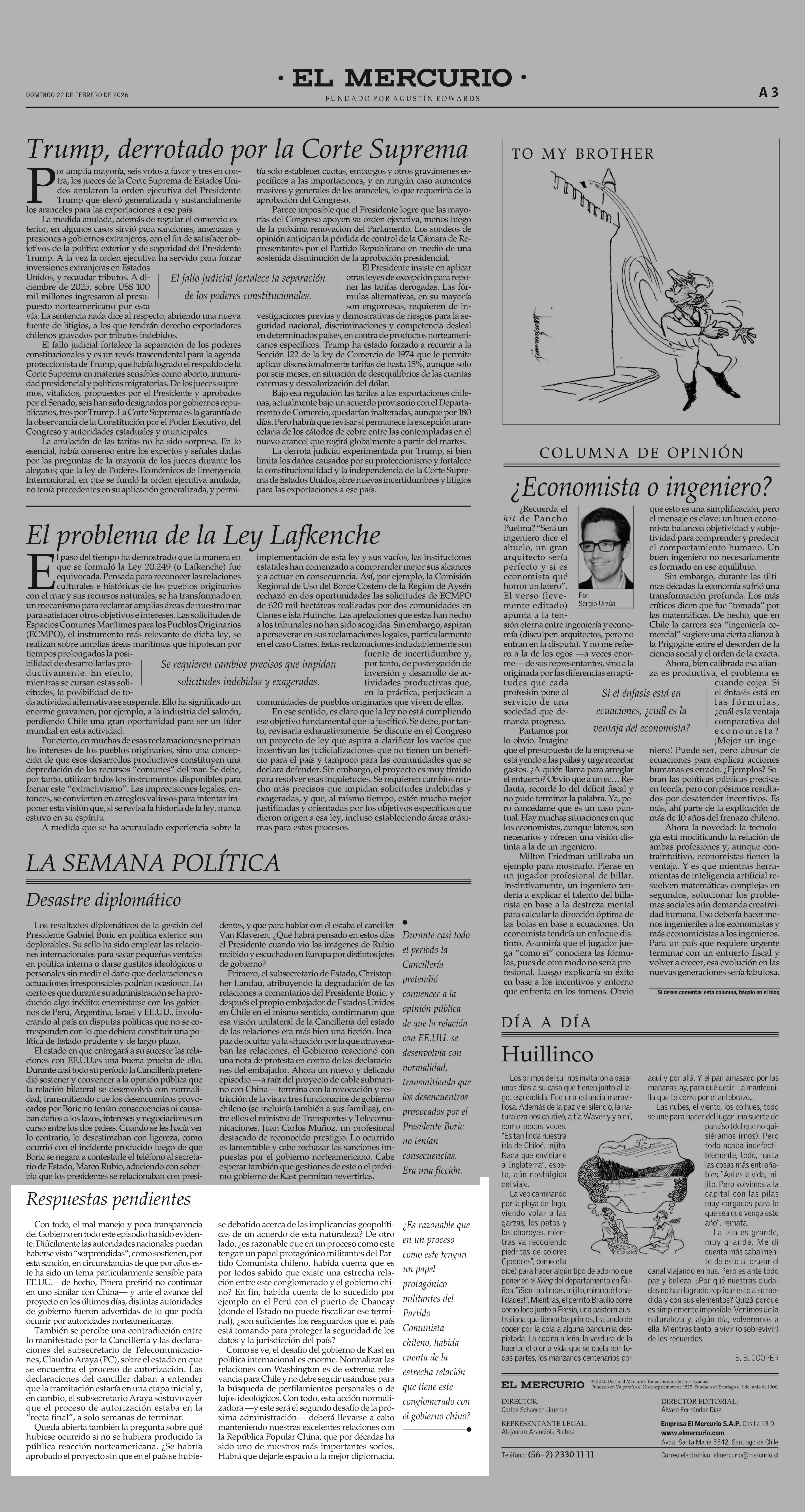 EDITORIAL: Respuestas pendientes 22-02-2026 El Mercurio |