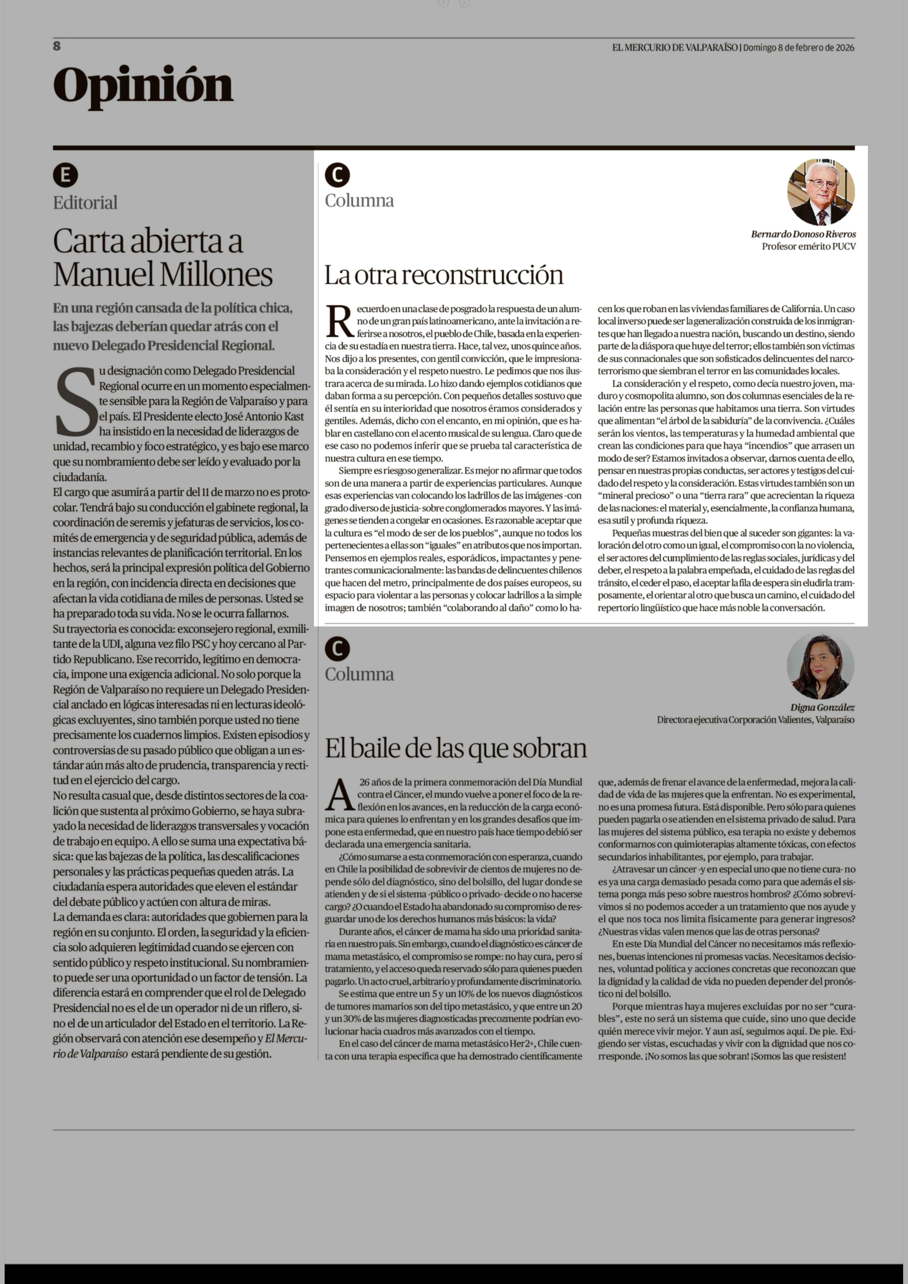 Columnas de Opinión: La otra reconstrucción 08-02-2026 El Mercurio de Valparaíso |