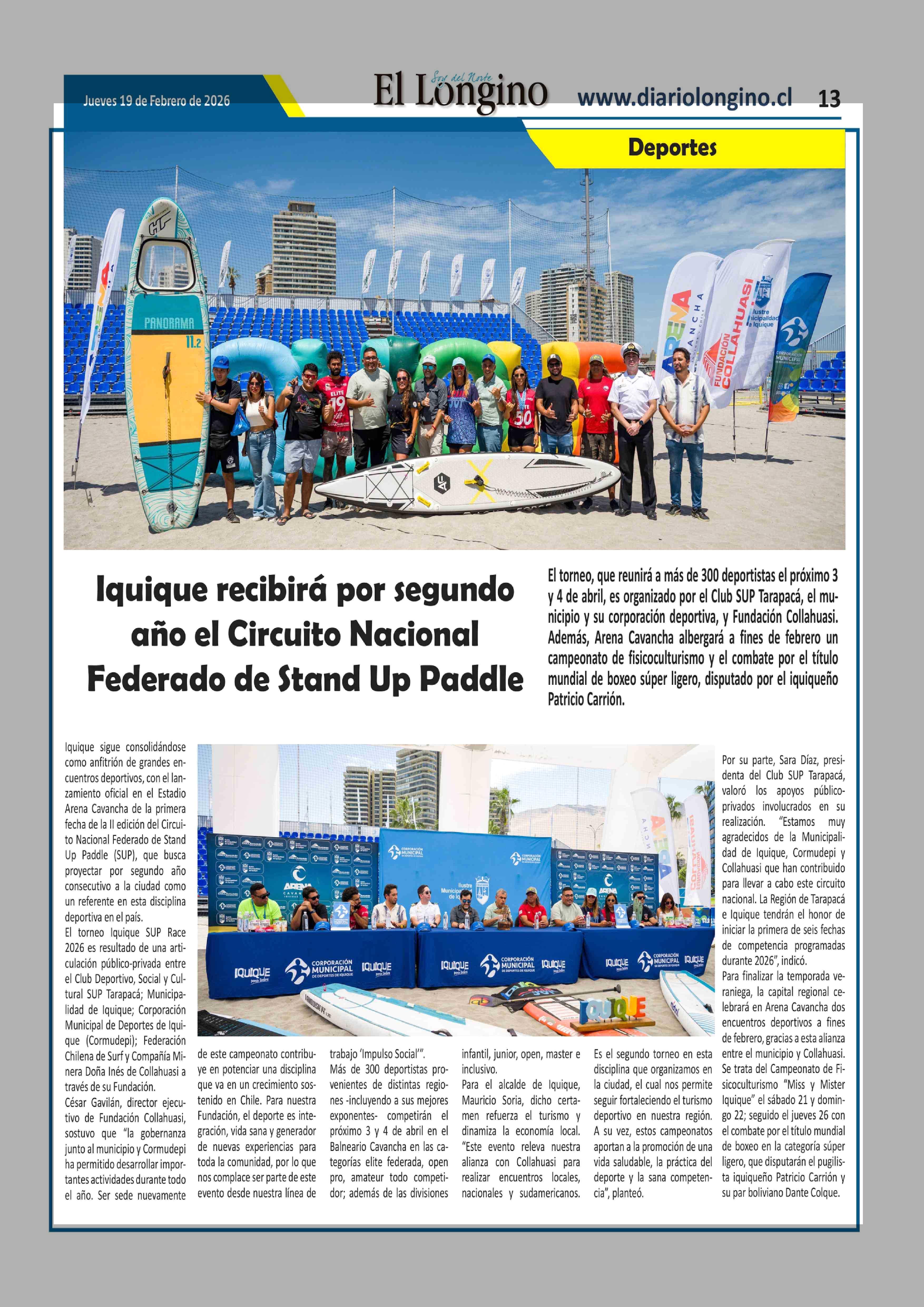 Iquique recibirá por segundo año el Circuito Nacional Federado de Stand Up Paddle 19-02-2026 El Longino |