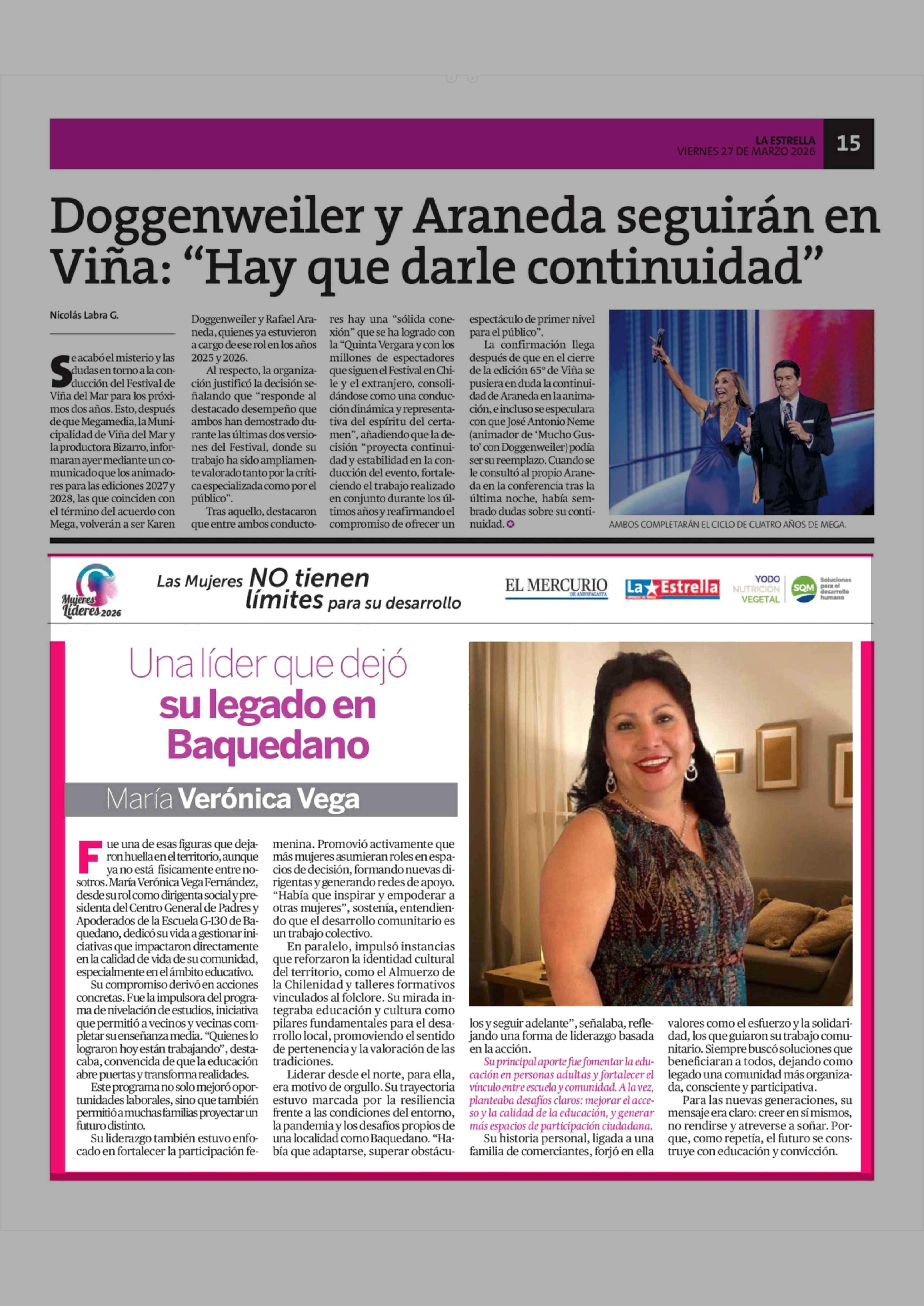 Una líder que dejó su legado en Baquedano 27-03-2026 La Estrella de Antofagasta |