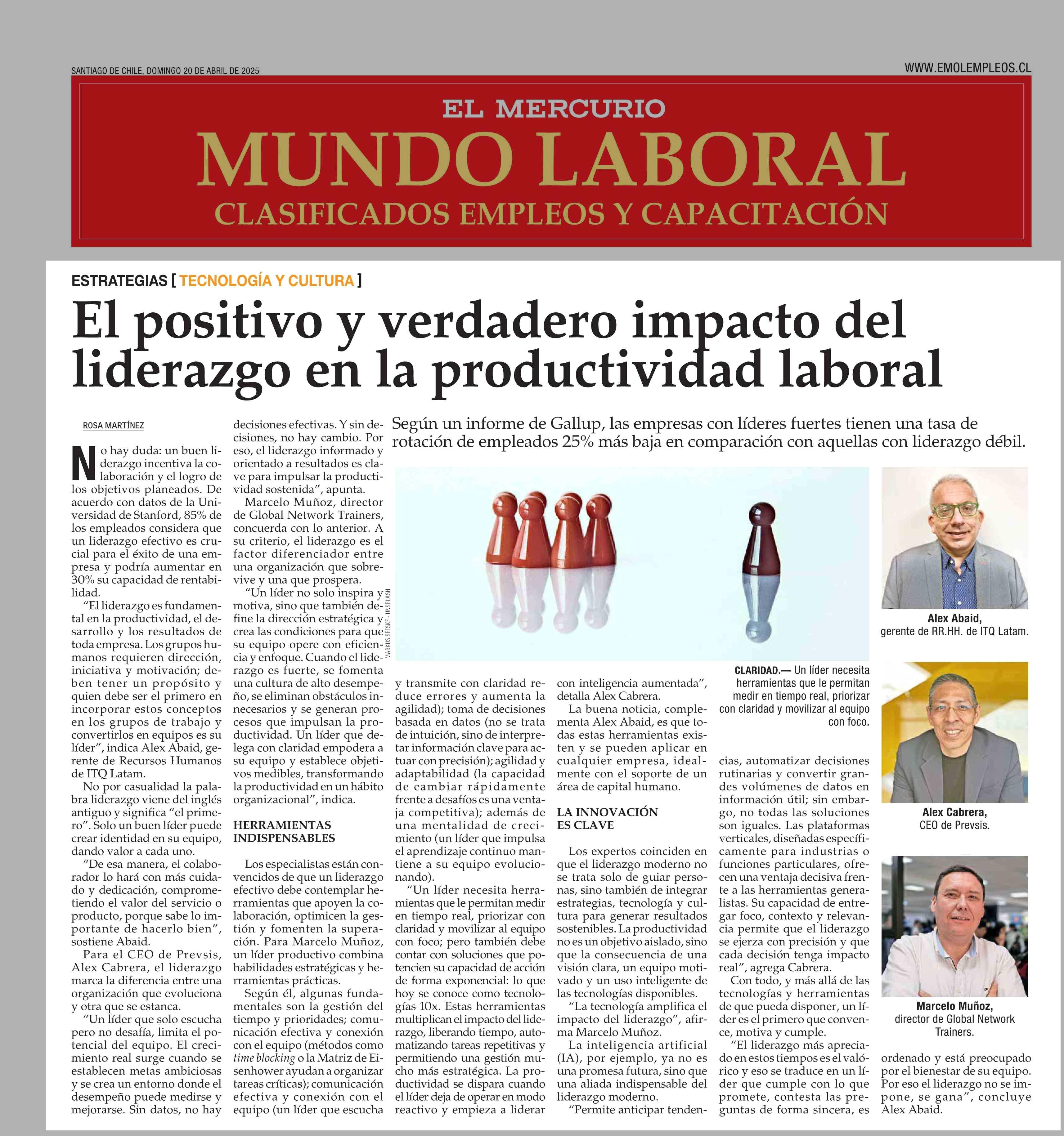 El positivo y verdadero impacto del liderazgo en la productividad laboral 20-04-2025 El Mercurio |