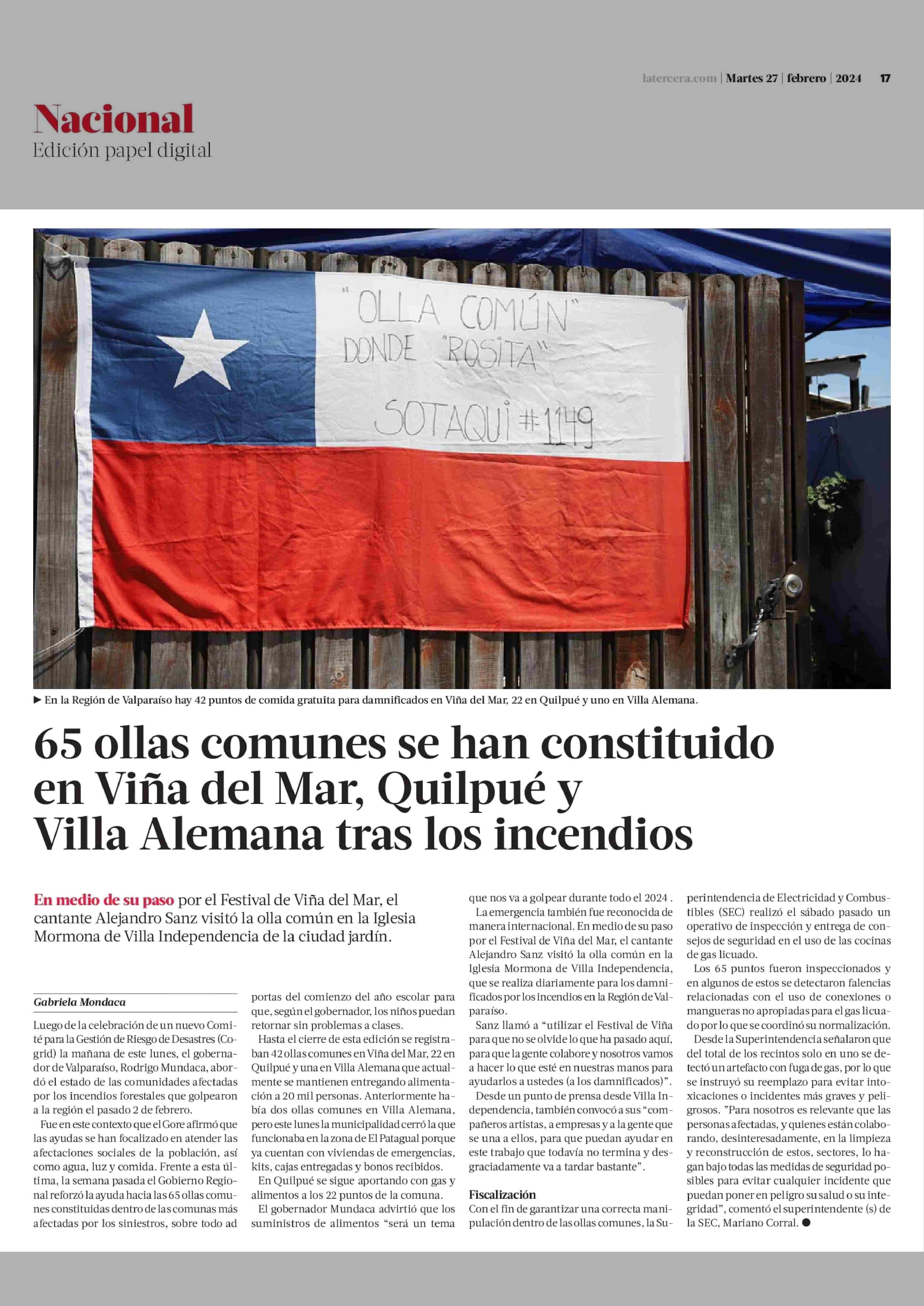 | Título: | 65 ollas comunes se han constituido en Viña del Mar, Quilpué y Villa Alemana tras los incendios |