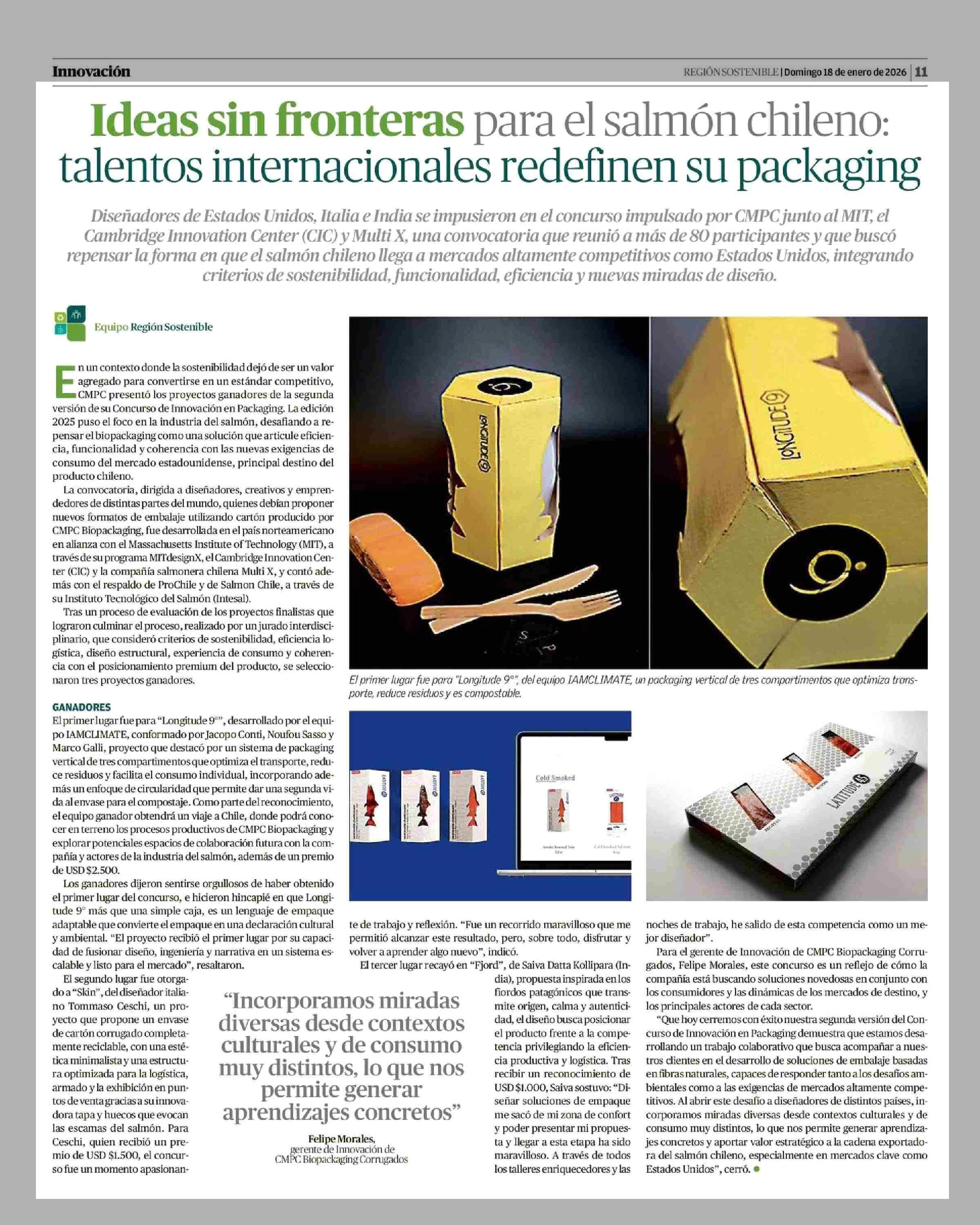 Ideas sin fronteras para el salmón chileno: talentos internacionales redefinen su packaging 18-01-2026 El Llanquihue |