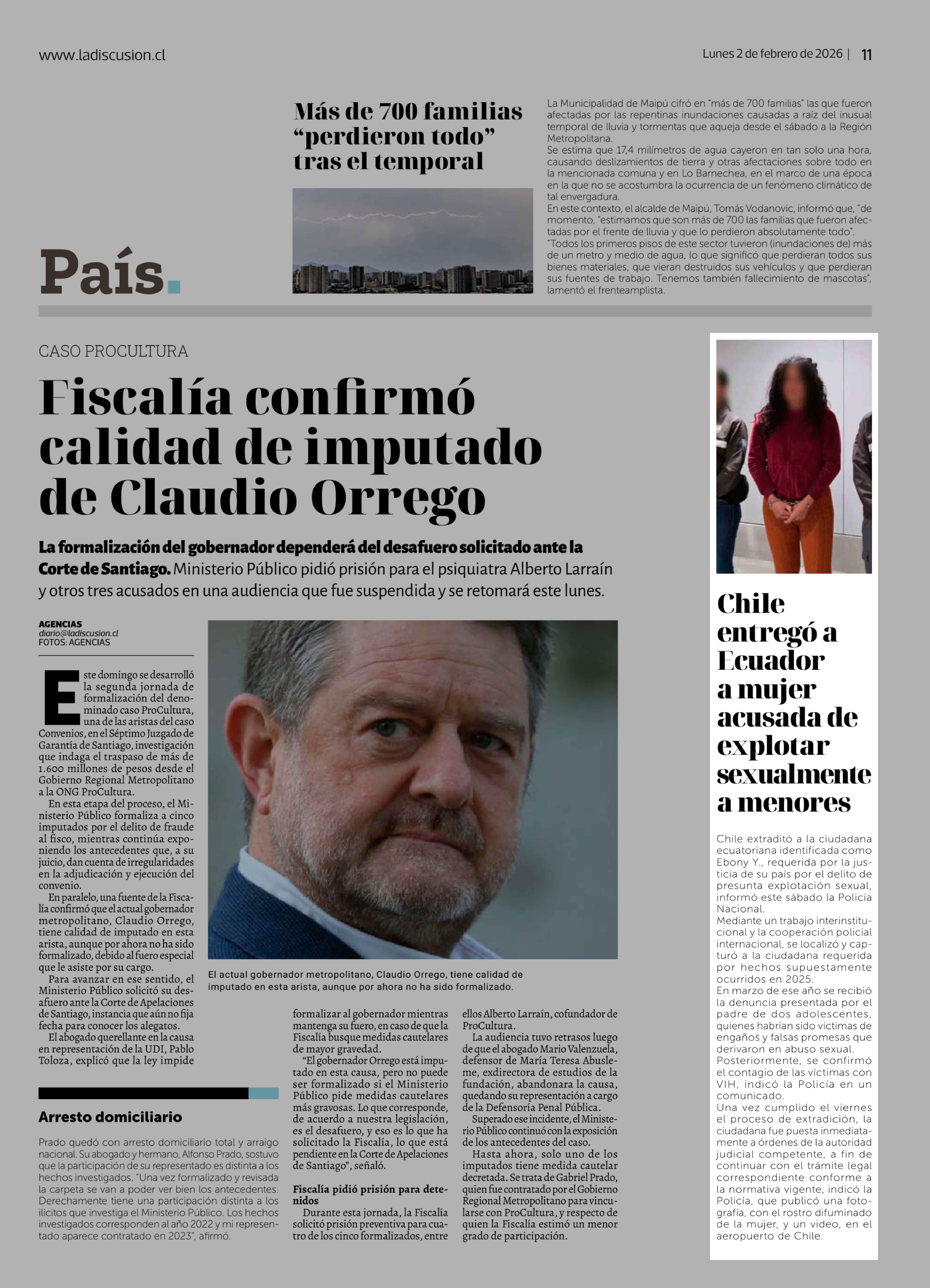 Chile entregó a Ecuador a mujer acusada de explotar sexualmente a menores 02-02-2026 La Discusión |