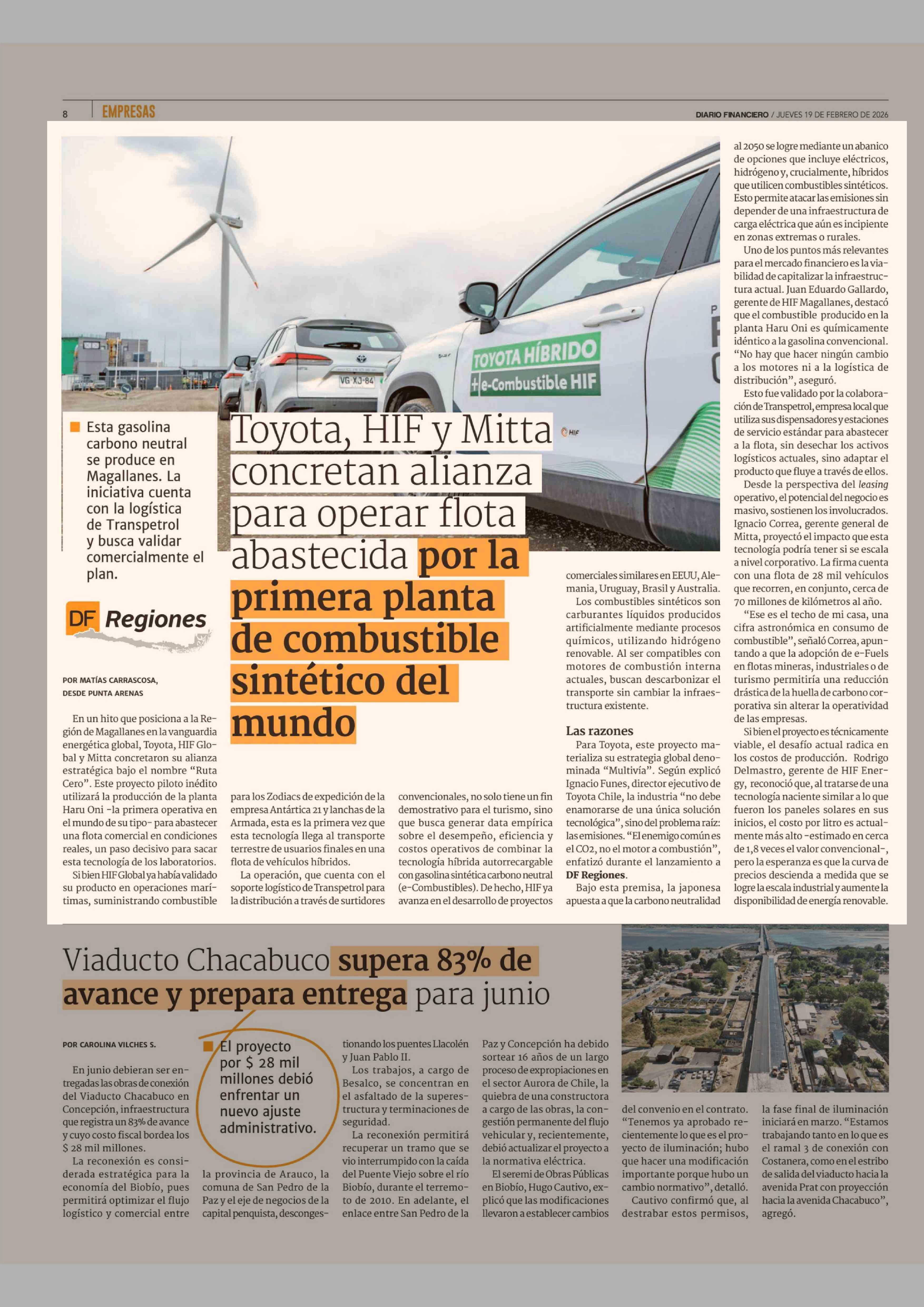 Título: Toyota, HIF y Mitta concretan alianza para operar flota abastecida por la primera planta de combustible sintético del mundo