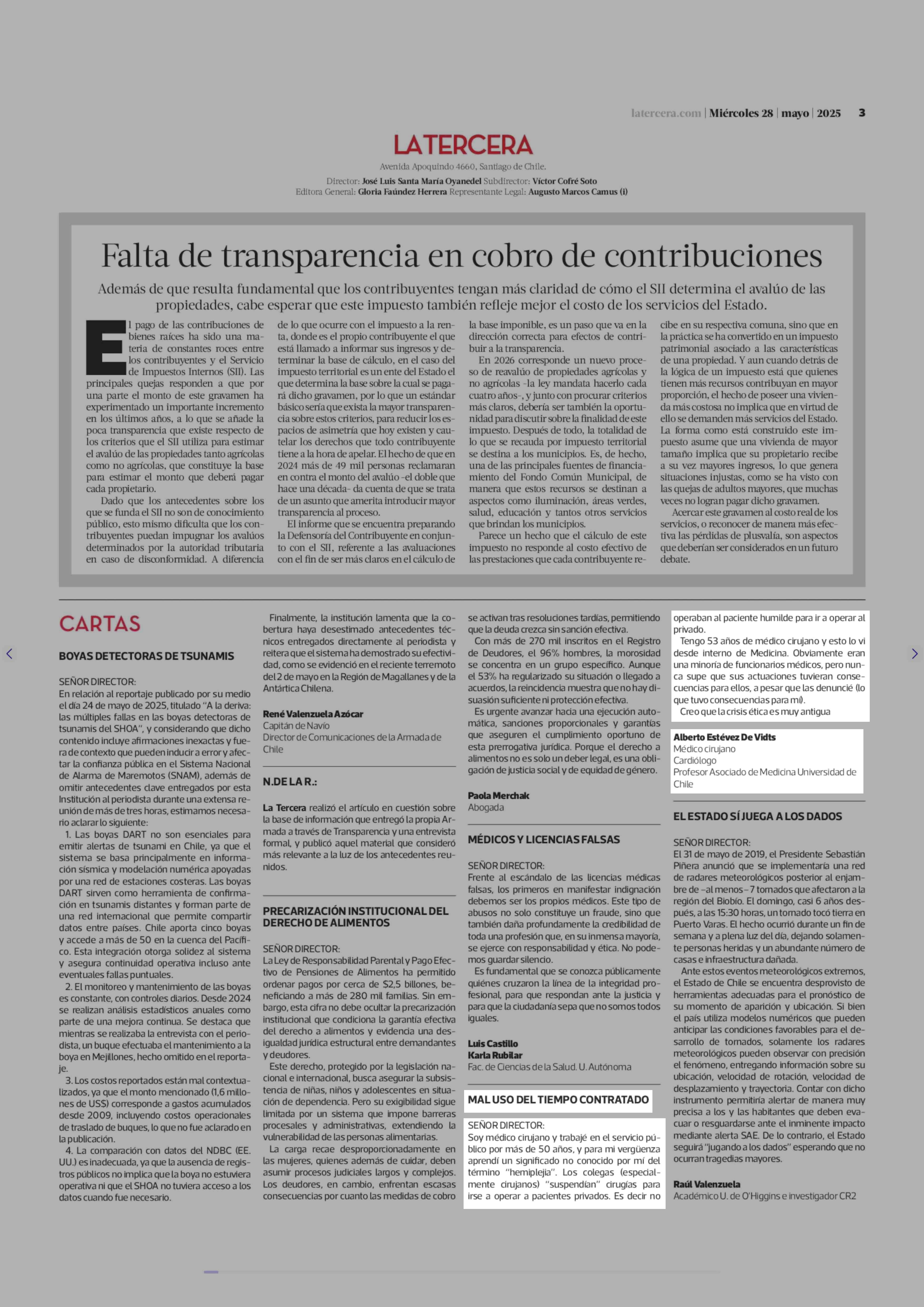 CARTAS: MAL USO DEL TIEMPO CONTRATADO 28-05-2025 La Tercera |