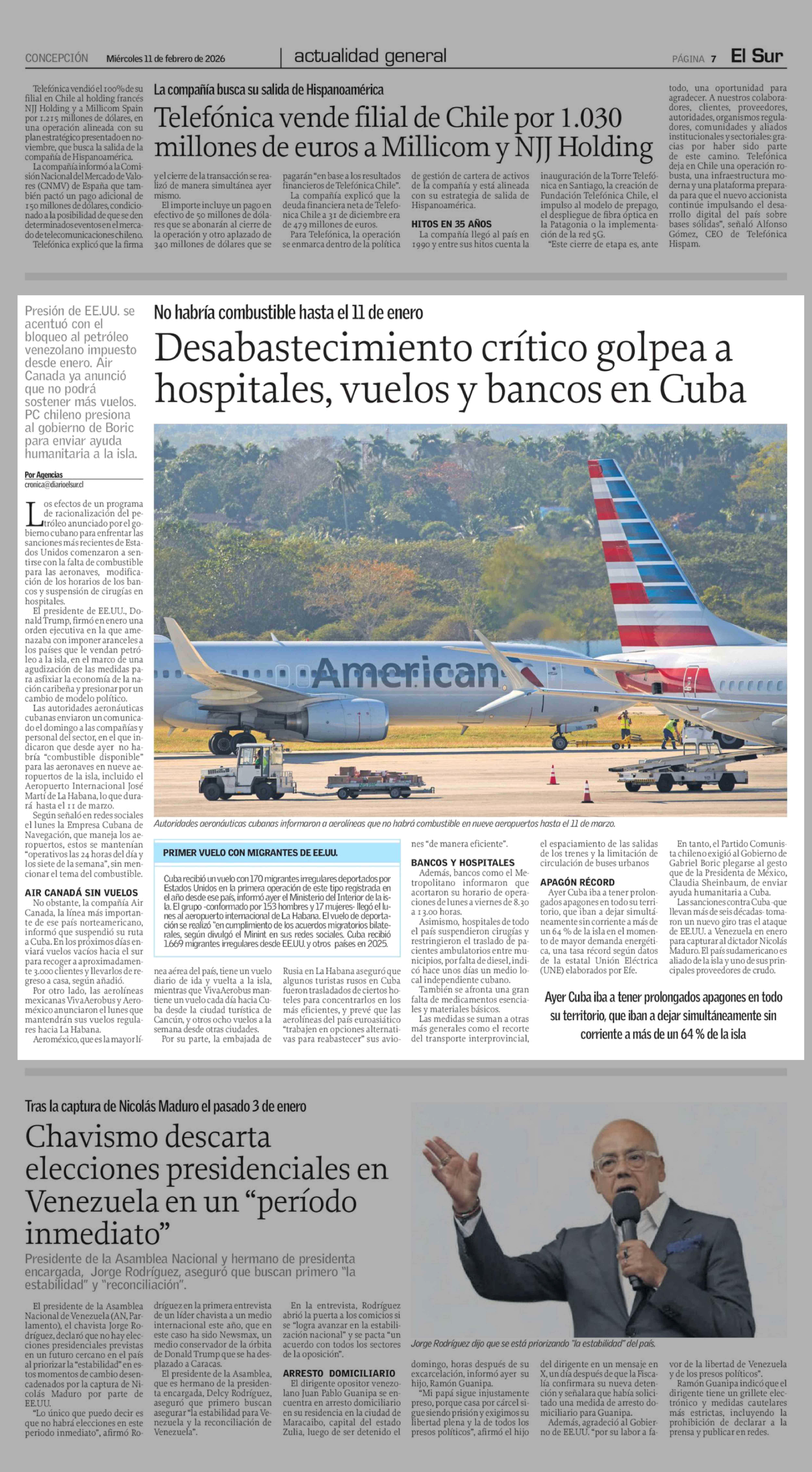 Desabastecimiento crítico golpea a hospitales, vuelos y bancos en Cuba 11-02-2026 El Sur |