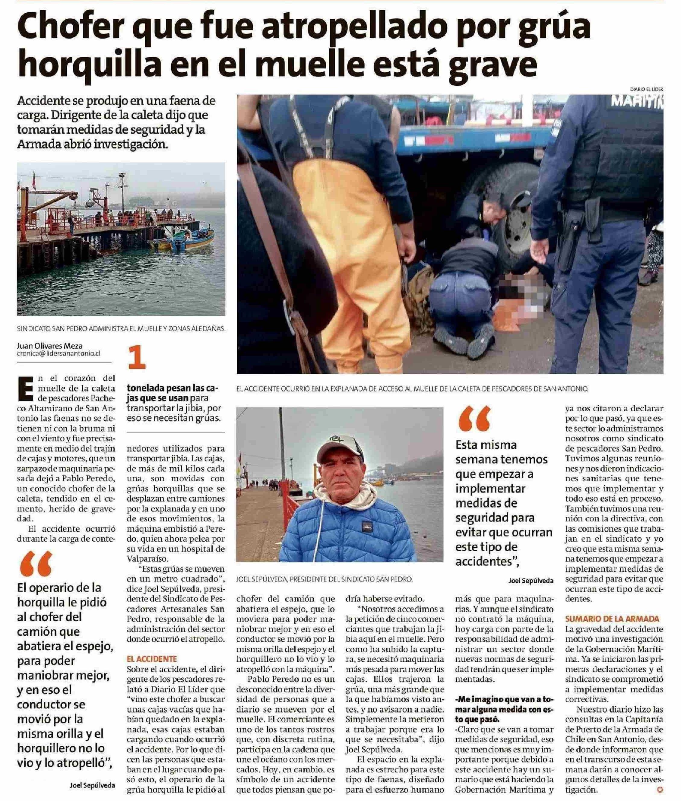 Chofer que fue atropellado por grúa horquilla en el muelle está grave 19-05-2025 El Líder |