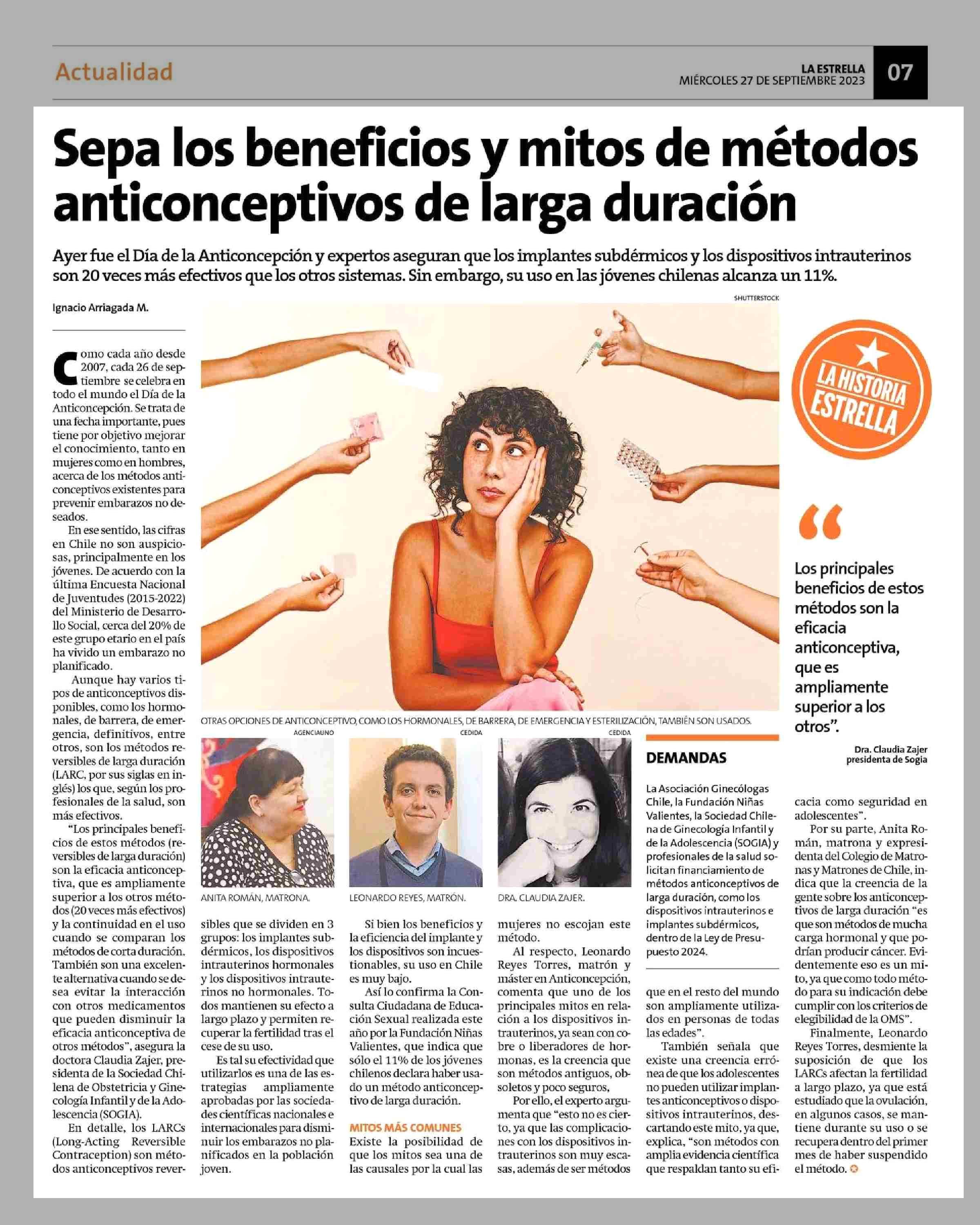 Sepa los beneficios y mitos de métodos anticonceptivos de larga duración 27-09-2023 La Estrella de Antofagasta |