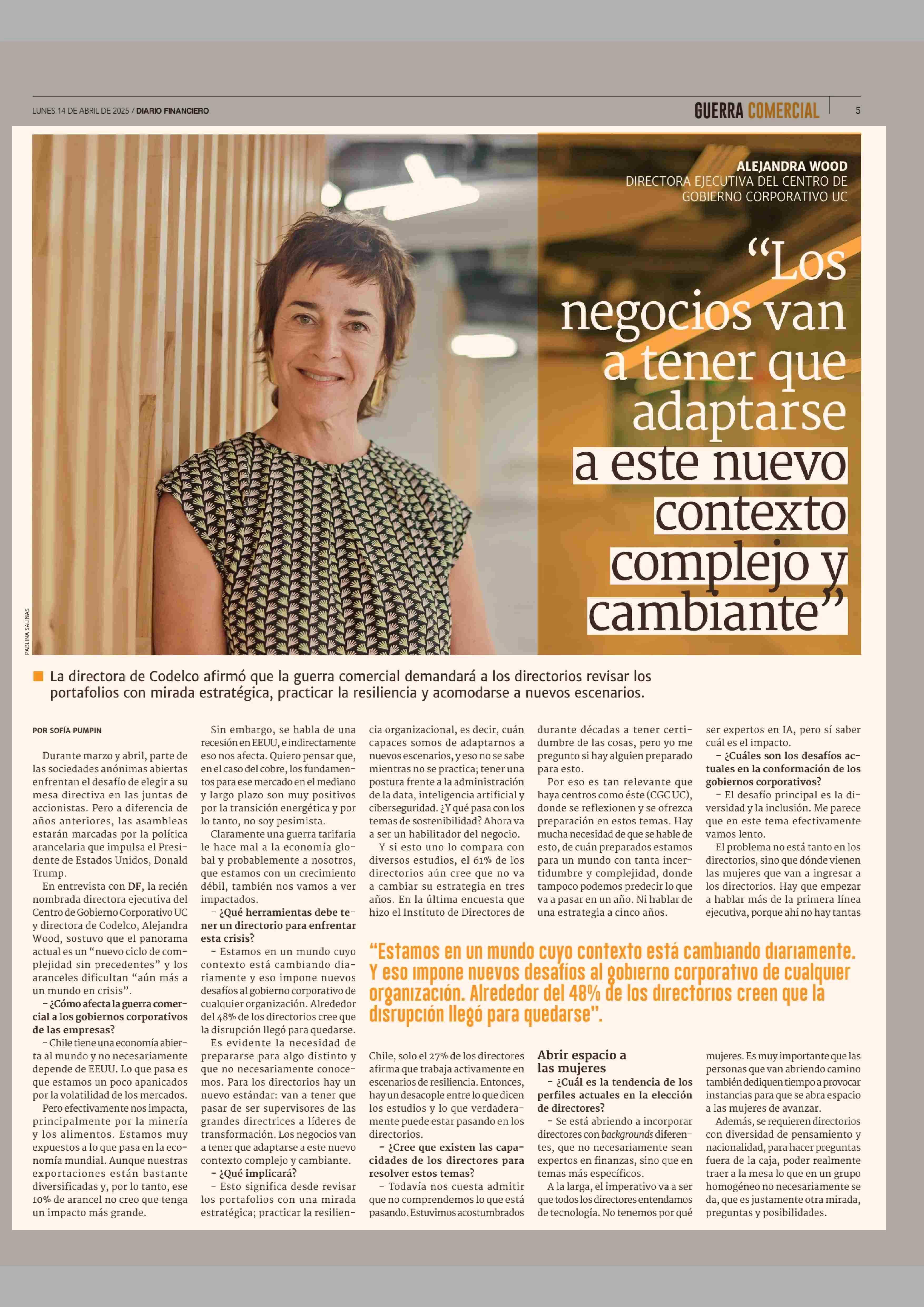 "Los negocios van a tener que adaptarse a este nuevo contexto complejo y cambiante" 14-04-2025 Diario Financiero |