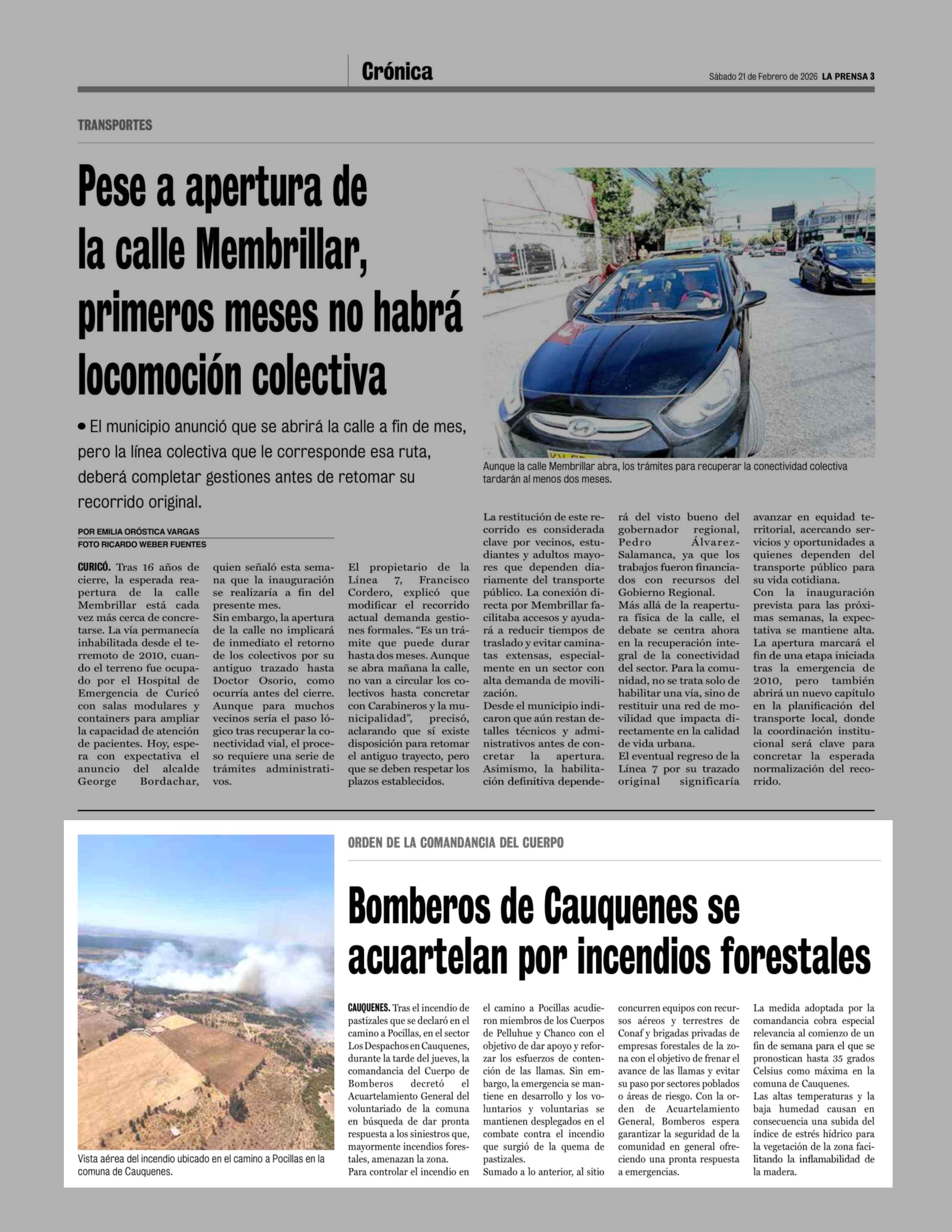 Bomberos de Cauquenes se acuartelan por incendios forestales 21-02-2026 La Prensa de Curicó |