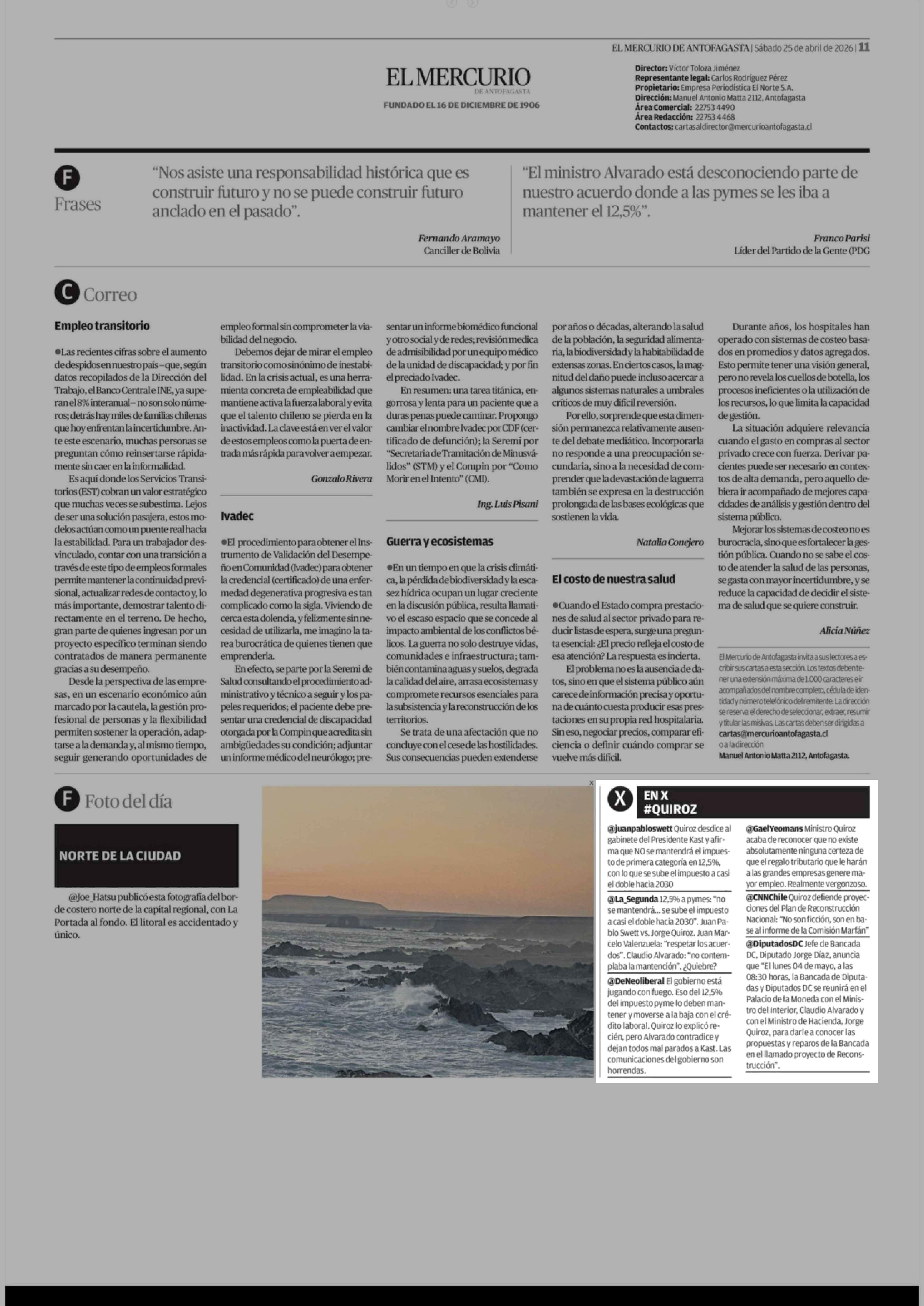 EN X #QUIROZ 25-04-2026 El Mercurio de Antofagasta |