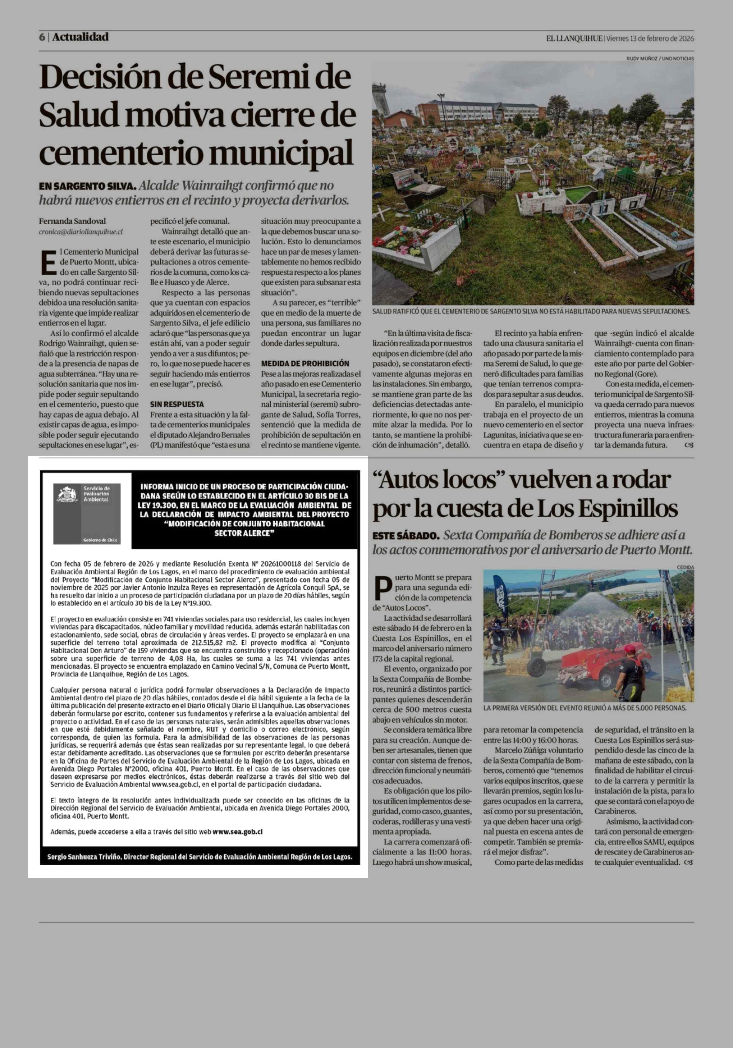 | Fecha: | 13-02-2026 | Sector: | Noticia general | Región: | Región de Los Lagos |