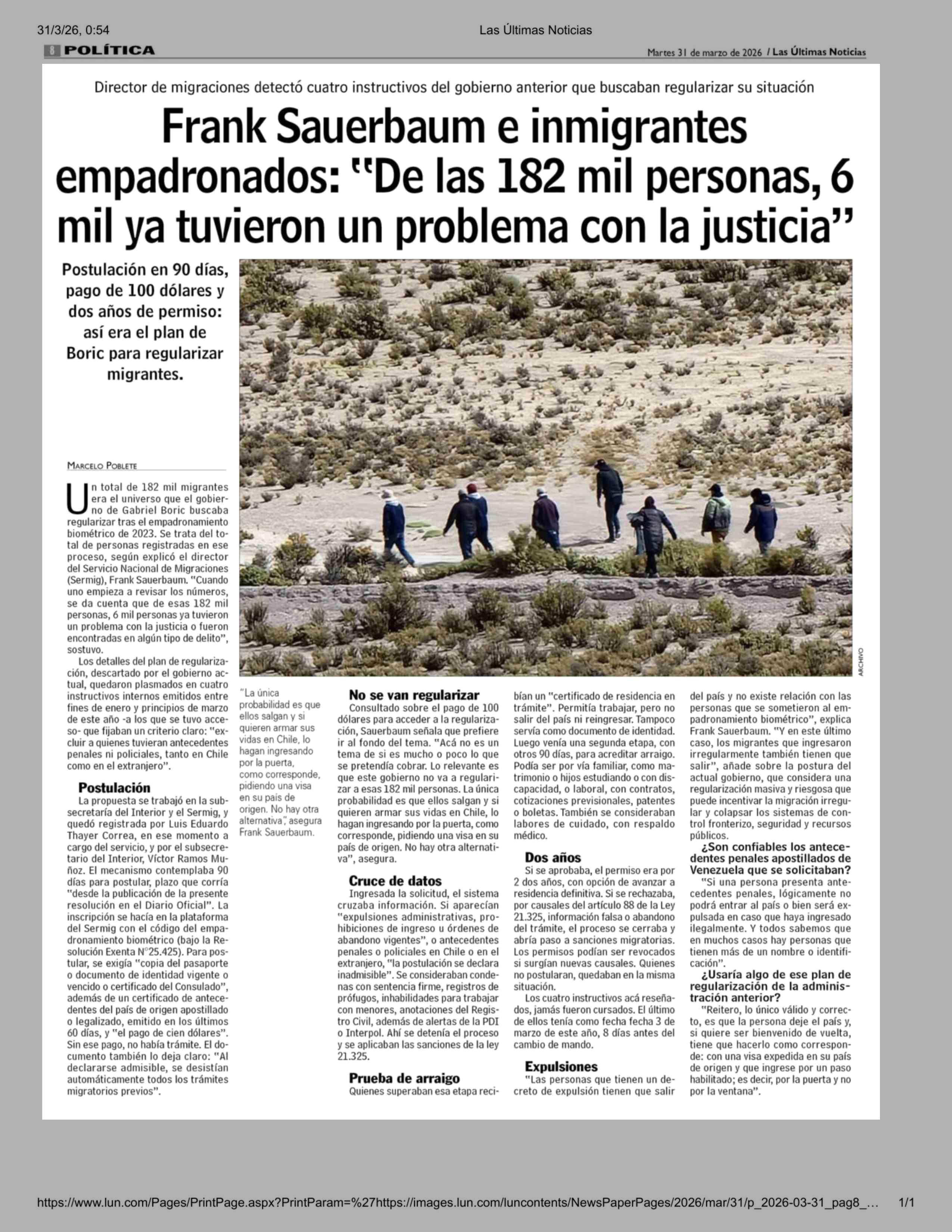 Fecha: 31-03-2026 Sector: Noticia general Región: Región Metropolitana de Santiago