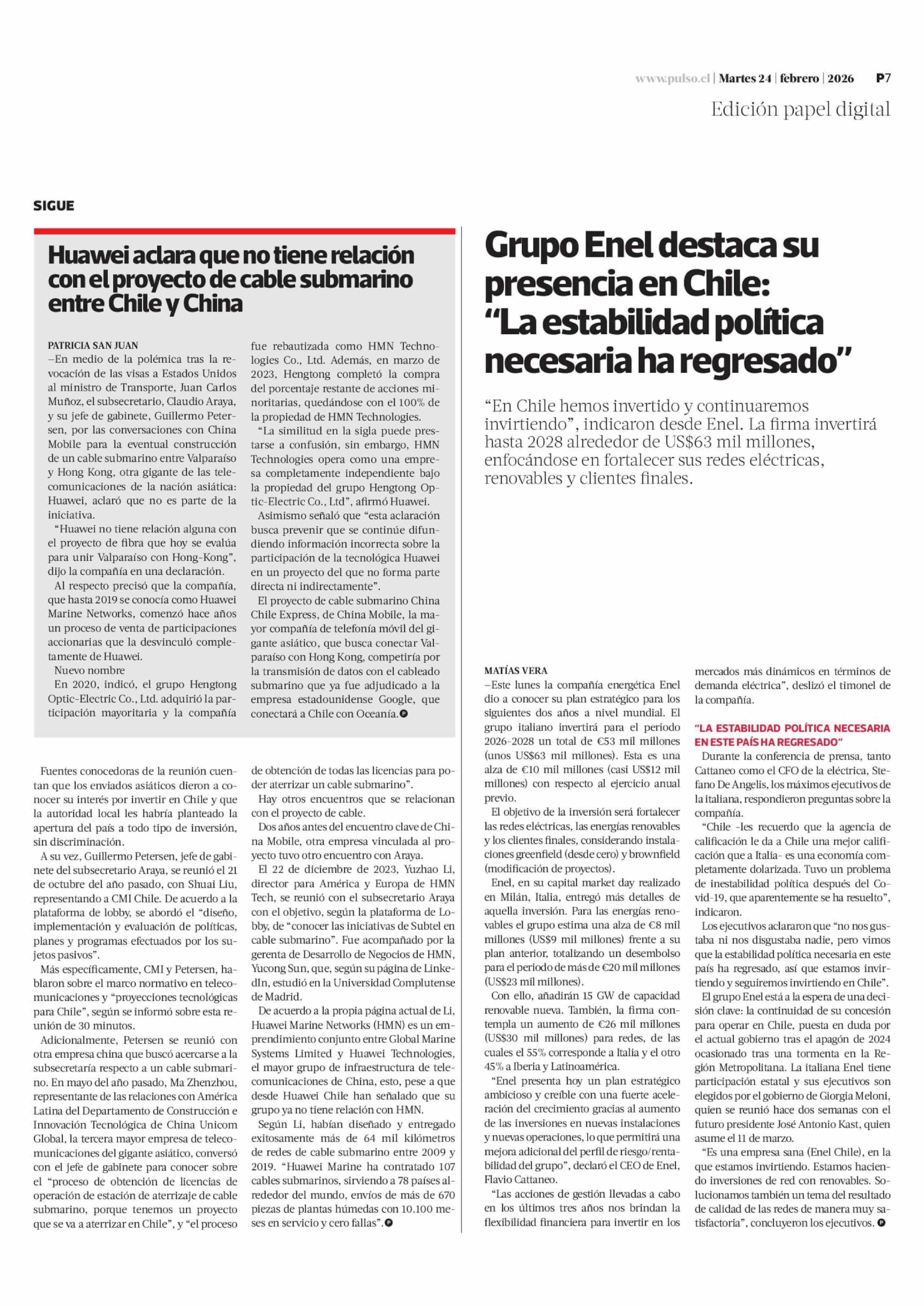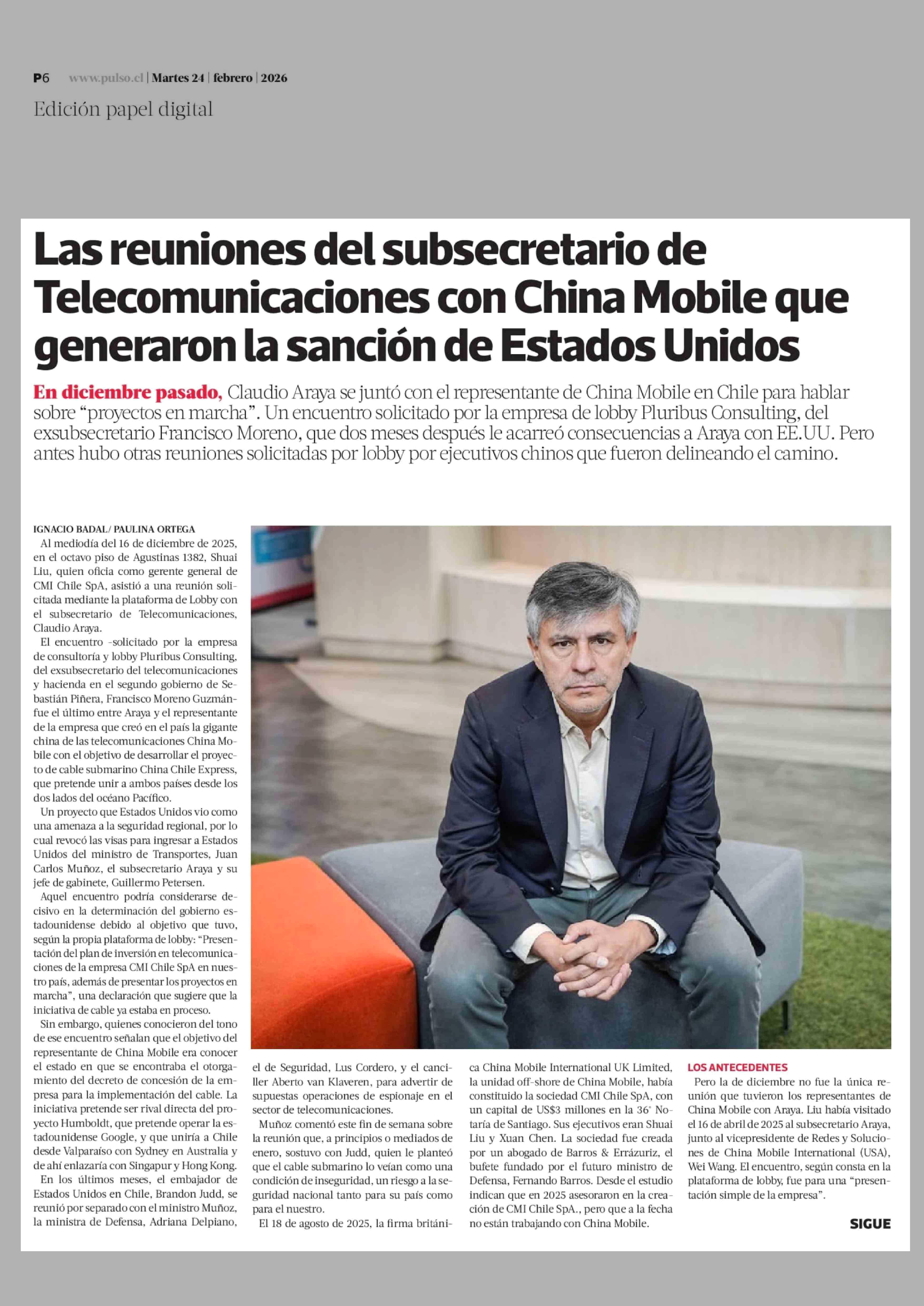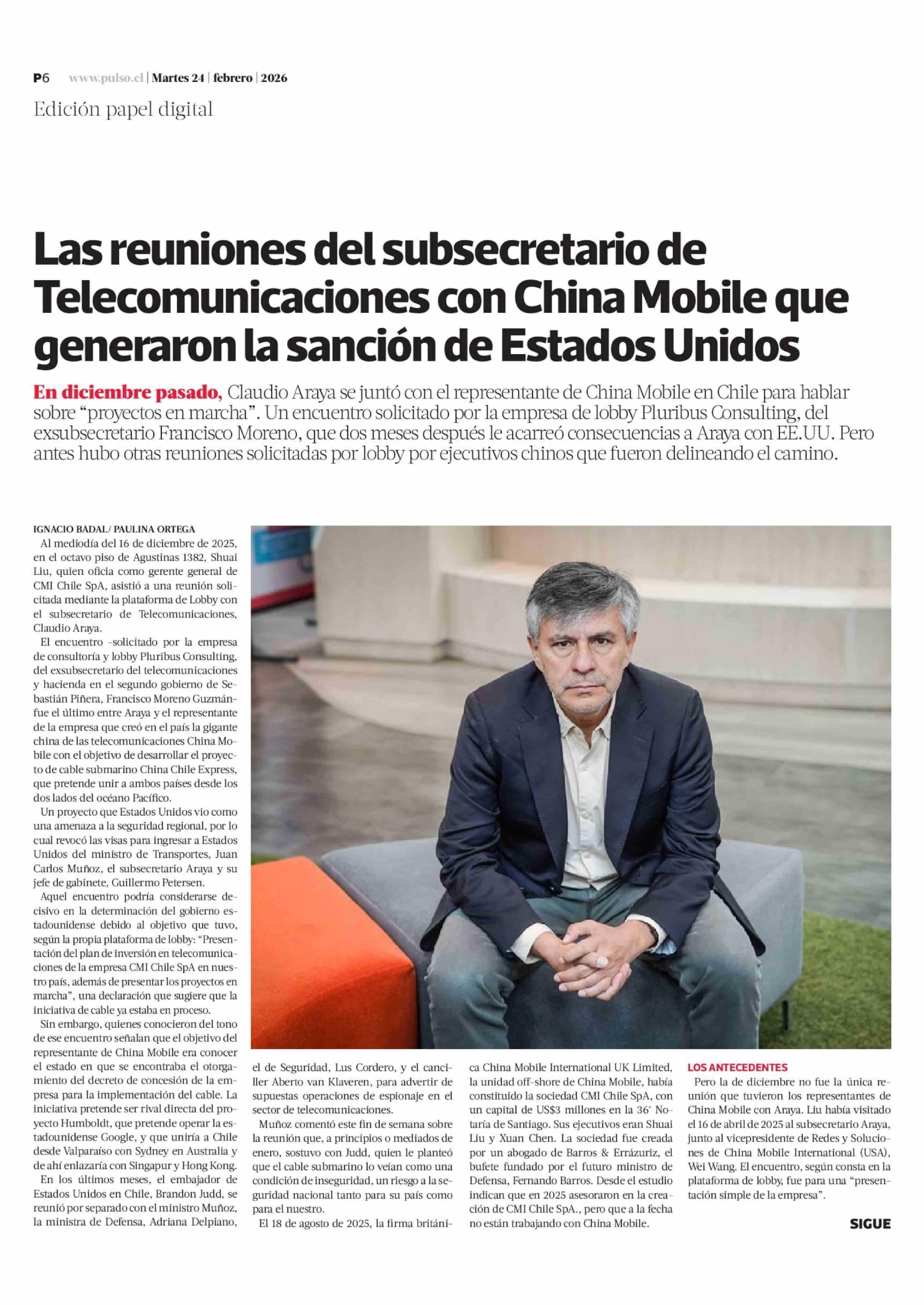 Las reuniones del subsecretario de Telecomunicaciones con China Mobile que generaron la sanción de Estados Unidos 24-02-2026 La Tercera |