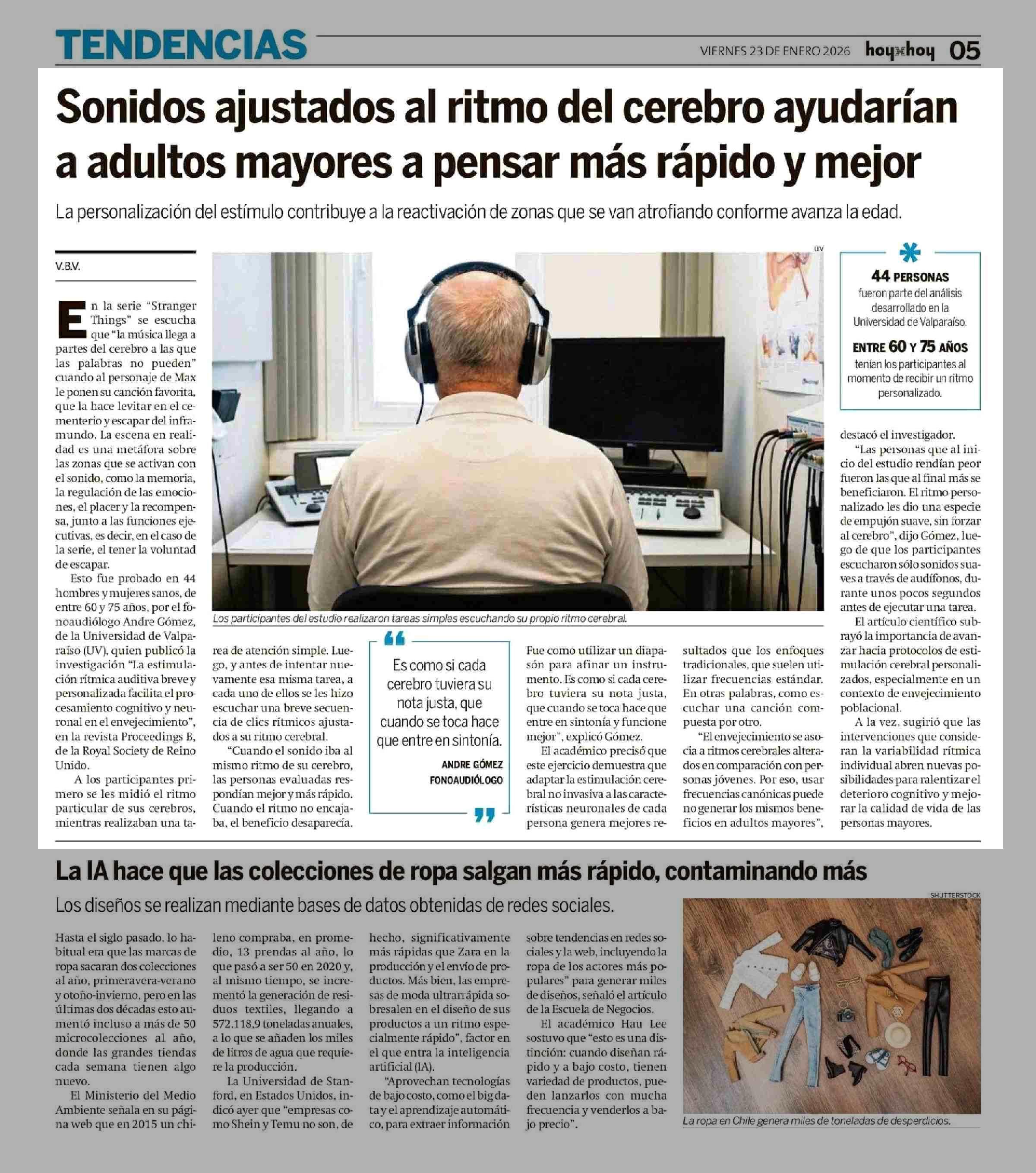 Sonidos ajustados al ritmo del cerebro ayudarían a adultos mayores a pensar más rápido y mejor 23-01-2026 Hoy x Hoy |