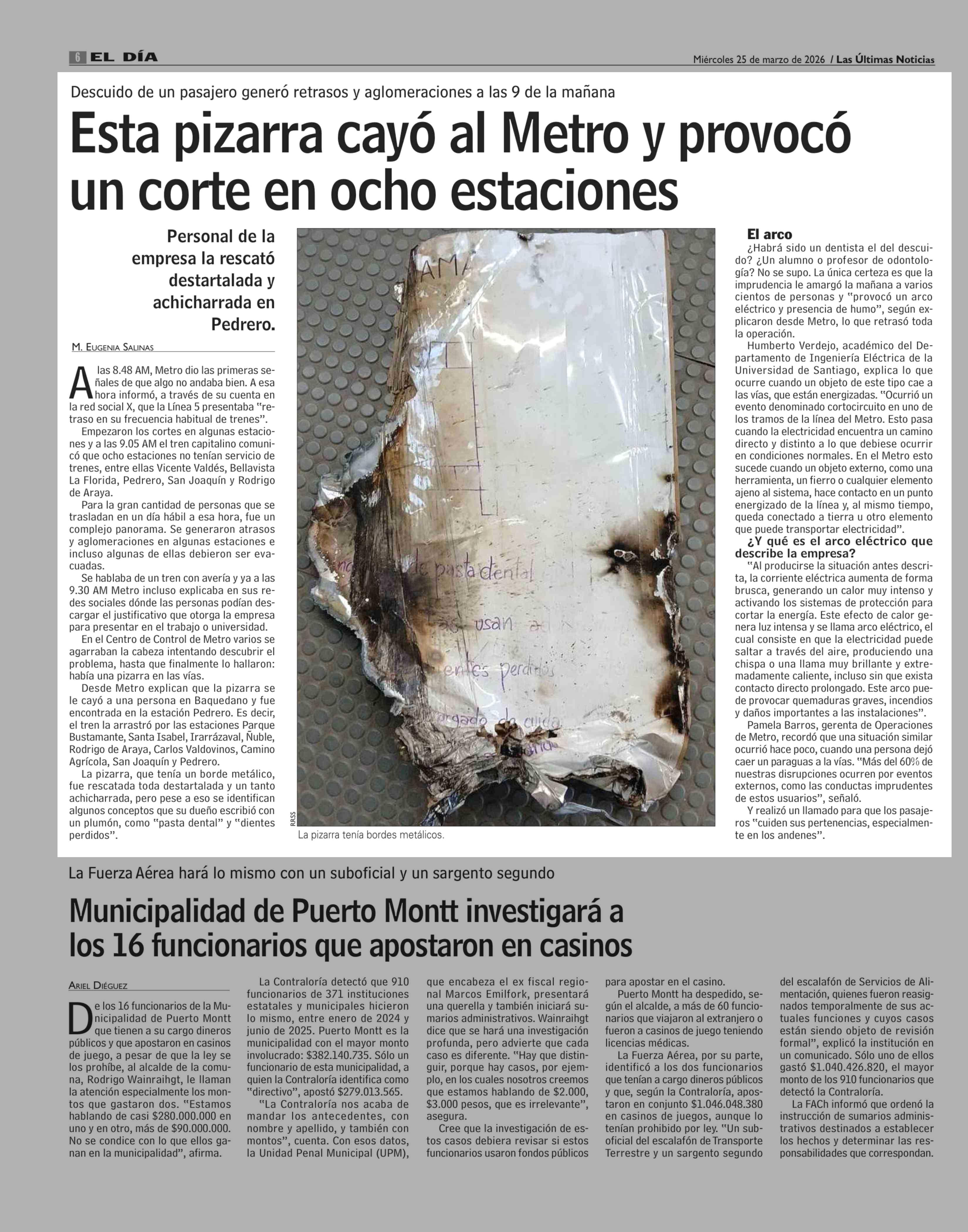 Título: Esta pizarra cayó al Metro y provocó un corte en ocho estaciones