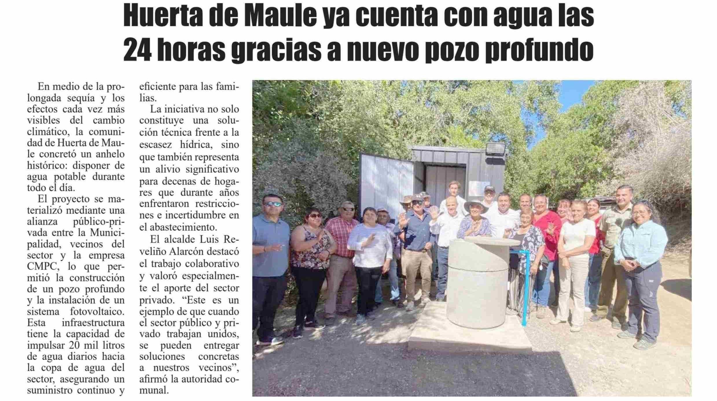 Huerta de Maule ya cuenta con agua las 24 horas gracias a nuevo pozo profundo 14-02-2026 El Heraldo |