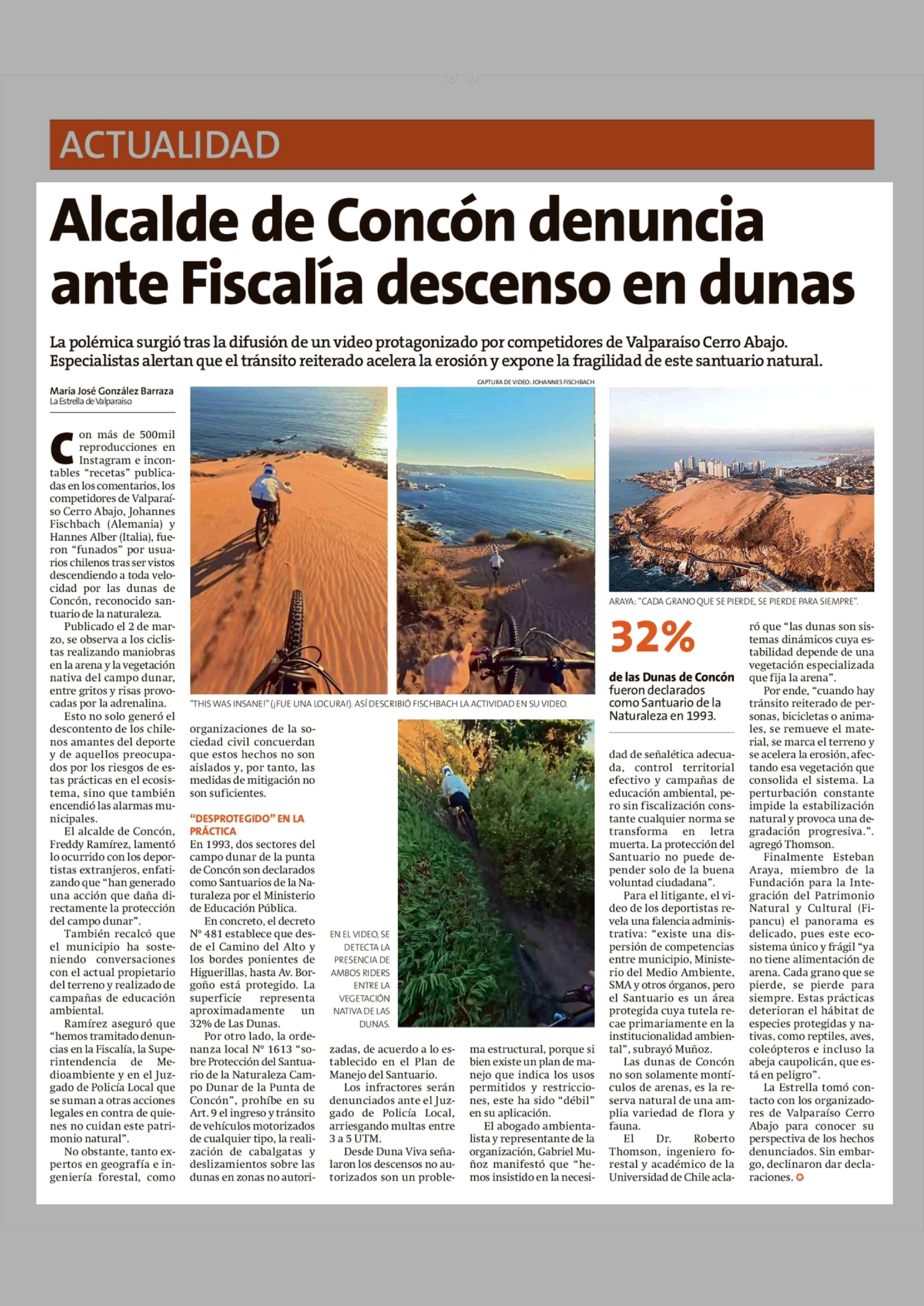 Alcalde de Concón denuncia ante Fiscalía descenso en dunas 04-03-2026 La Estrella de Valparaíso |