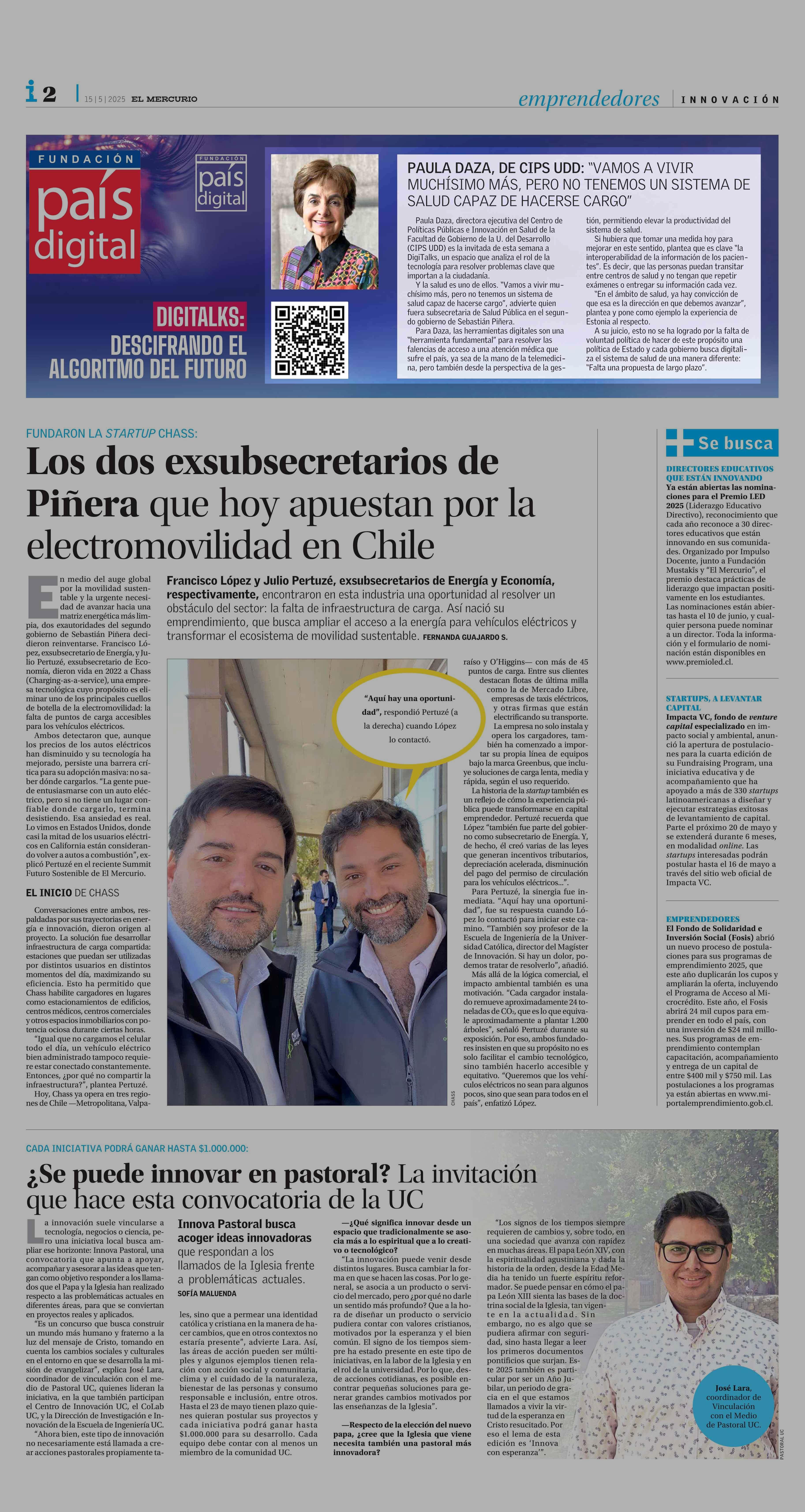 PAULA DAZA, DE CIPS UDD: “VAMOS A VIVIR SALUD CAPAZ DE HACERSE CARGO” 15-05-2025 El Mercurio |