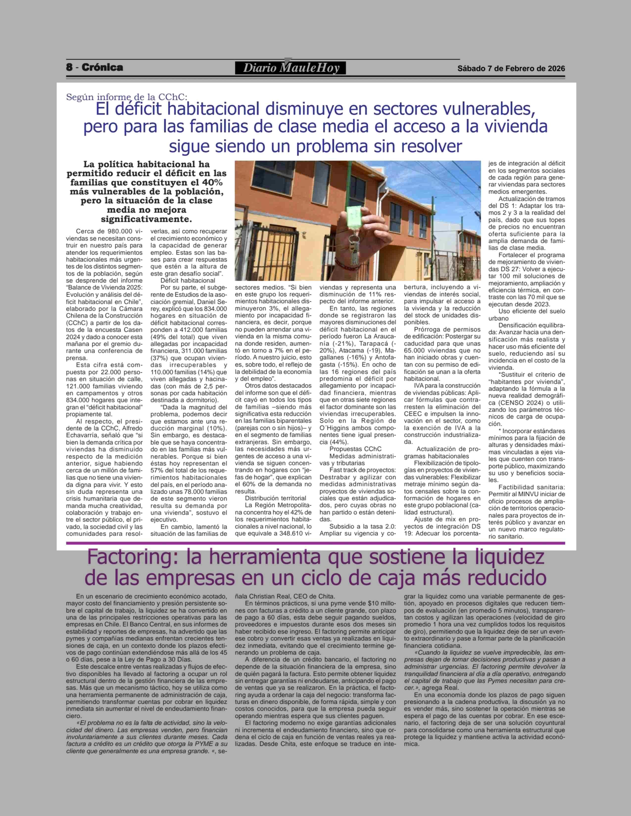 El déficit habitacional disminuye en sectores vulnerables, pero para las familias de clase media el acceso a la vivienda sigue siendo un problema sin resolver 07-02-2026 Maule Hoy |