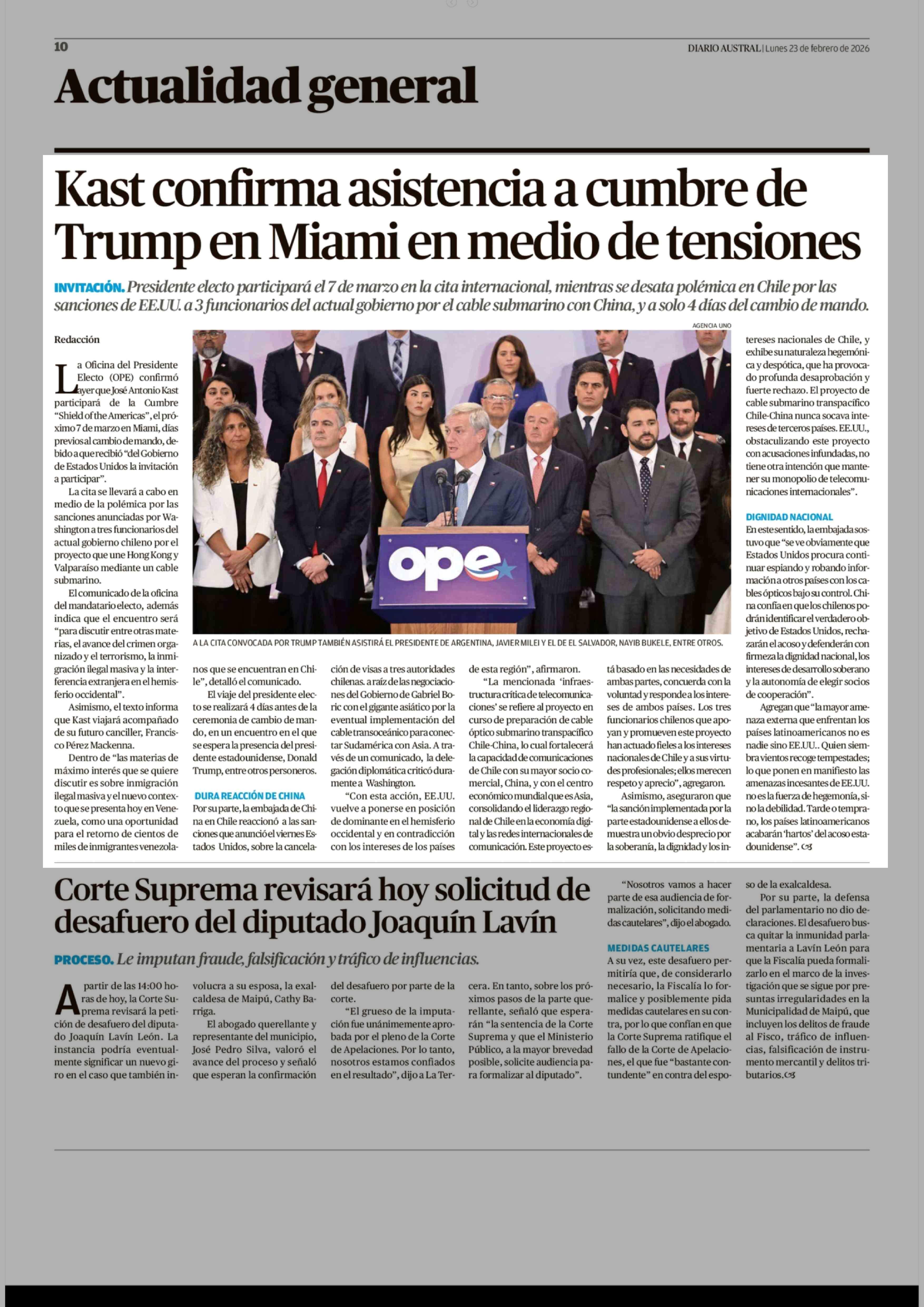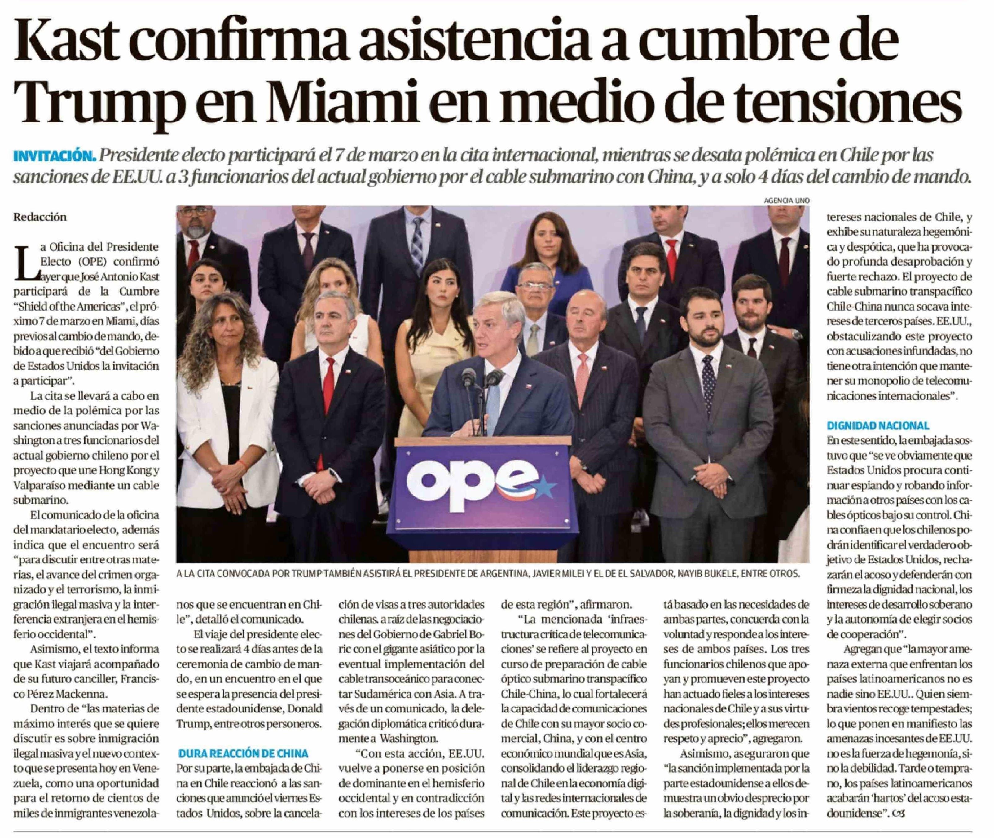 Título: Kast confirma asistencia a cumbre de Trump en Miami en medio de tensiones