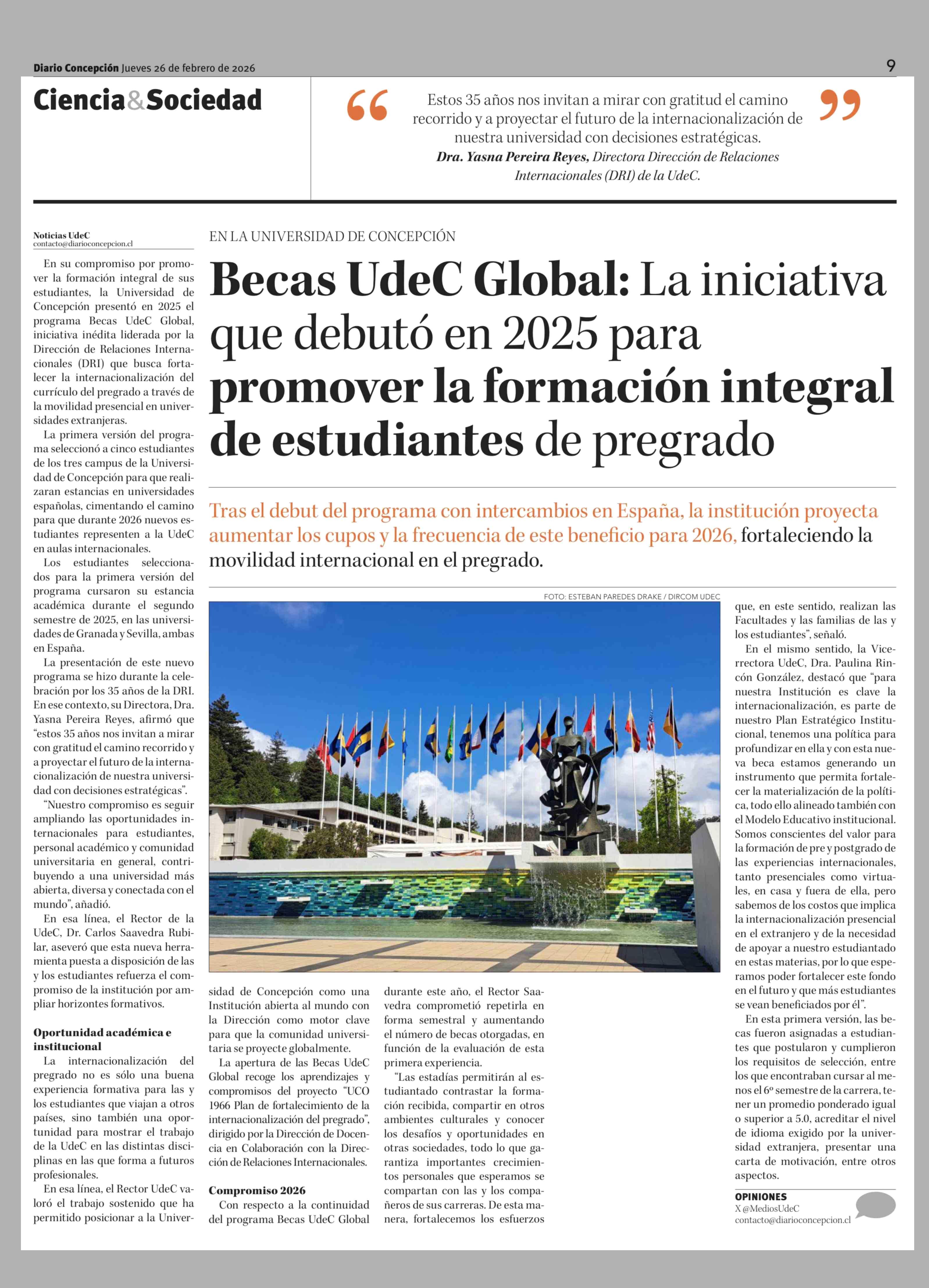 Título: Becas UdeC Global: La iniciativa que debutó en 2025 para promover la formación integral de estudiantes de pregrado