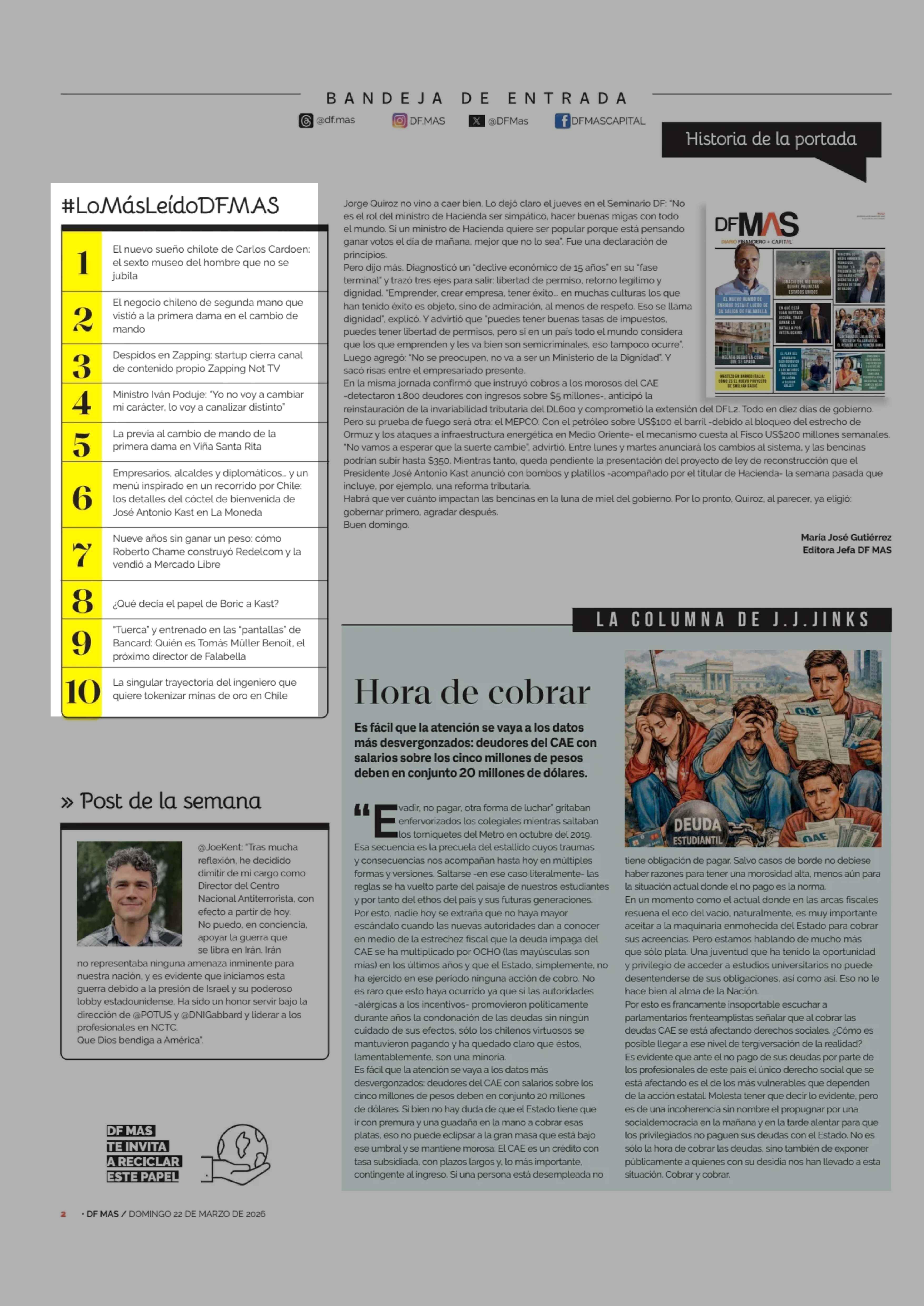 #LoMásLeídoDFMAS 22-03-2026 Diario Financiero |