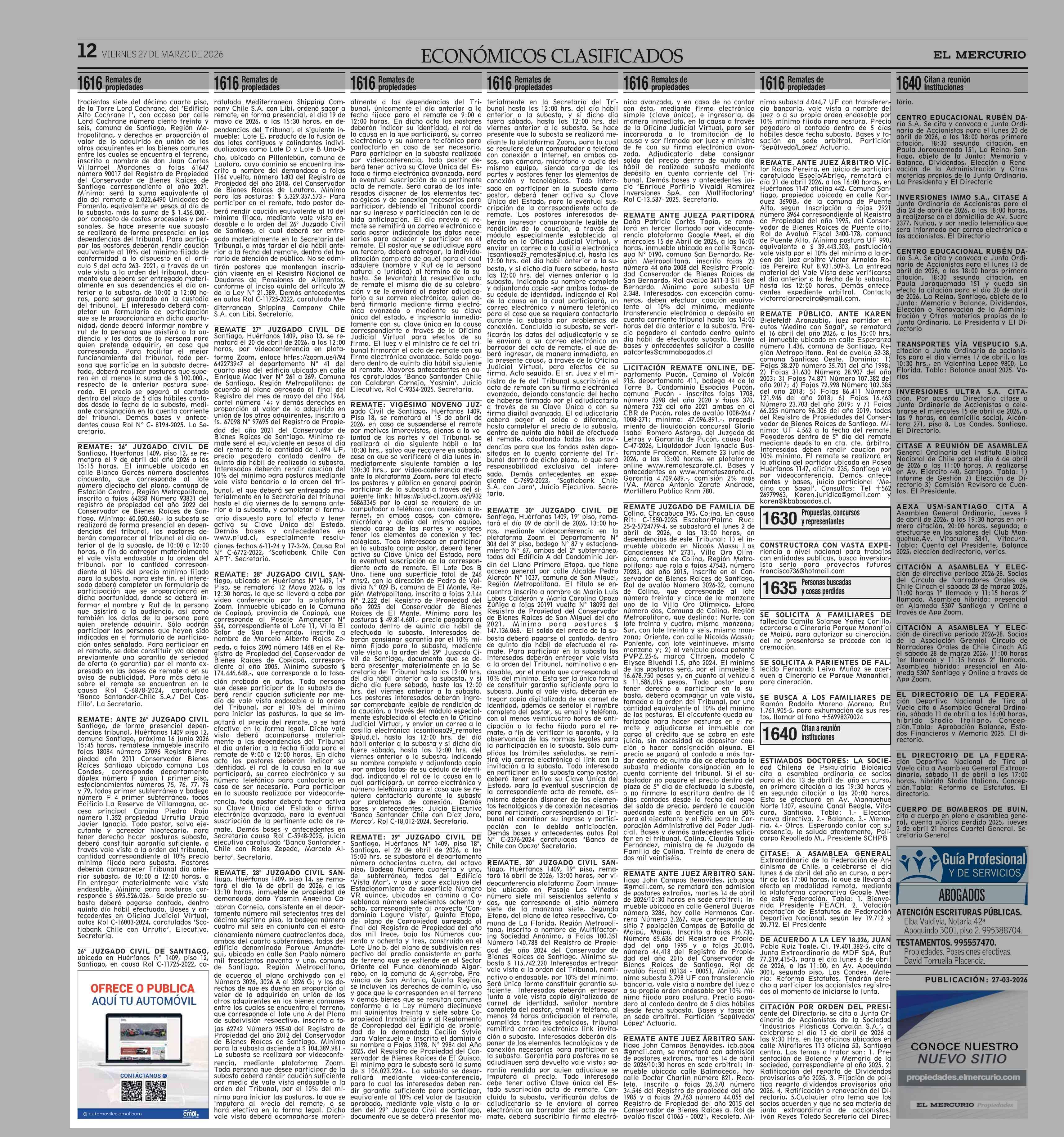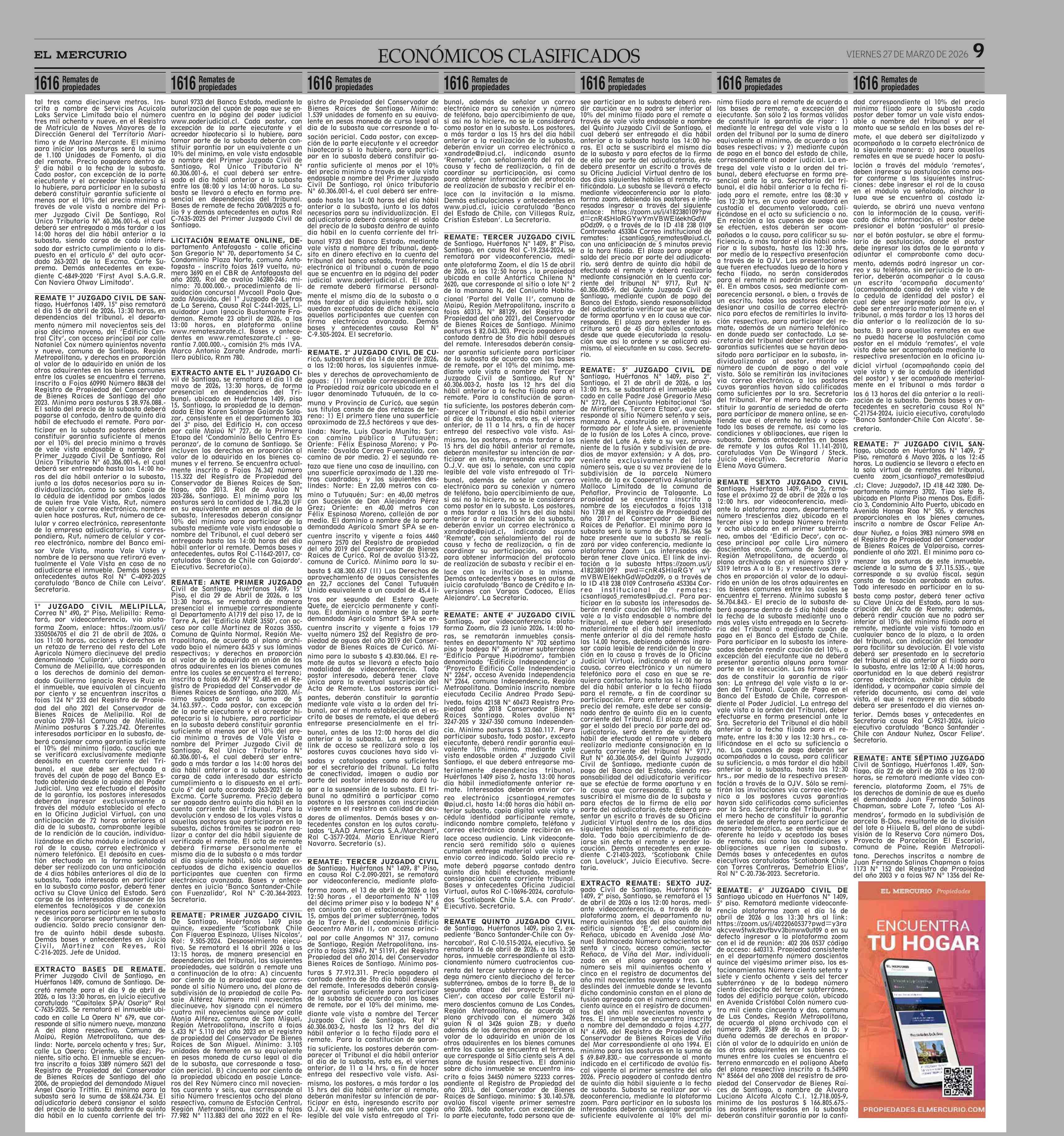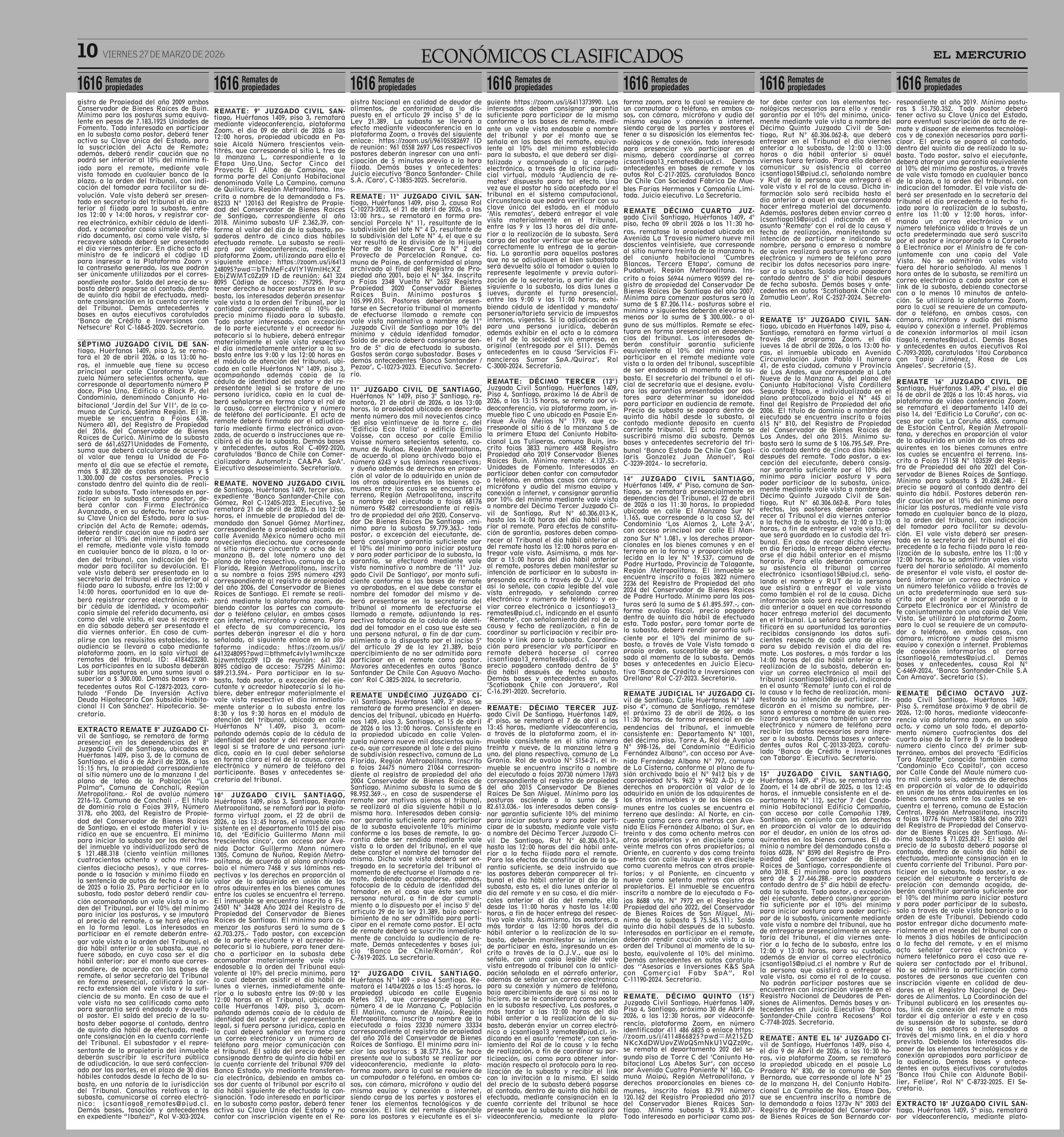 REMATES: 1616 Remates de propiedades 27-03-2026 El Mercurio |