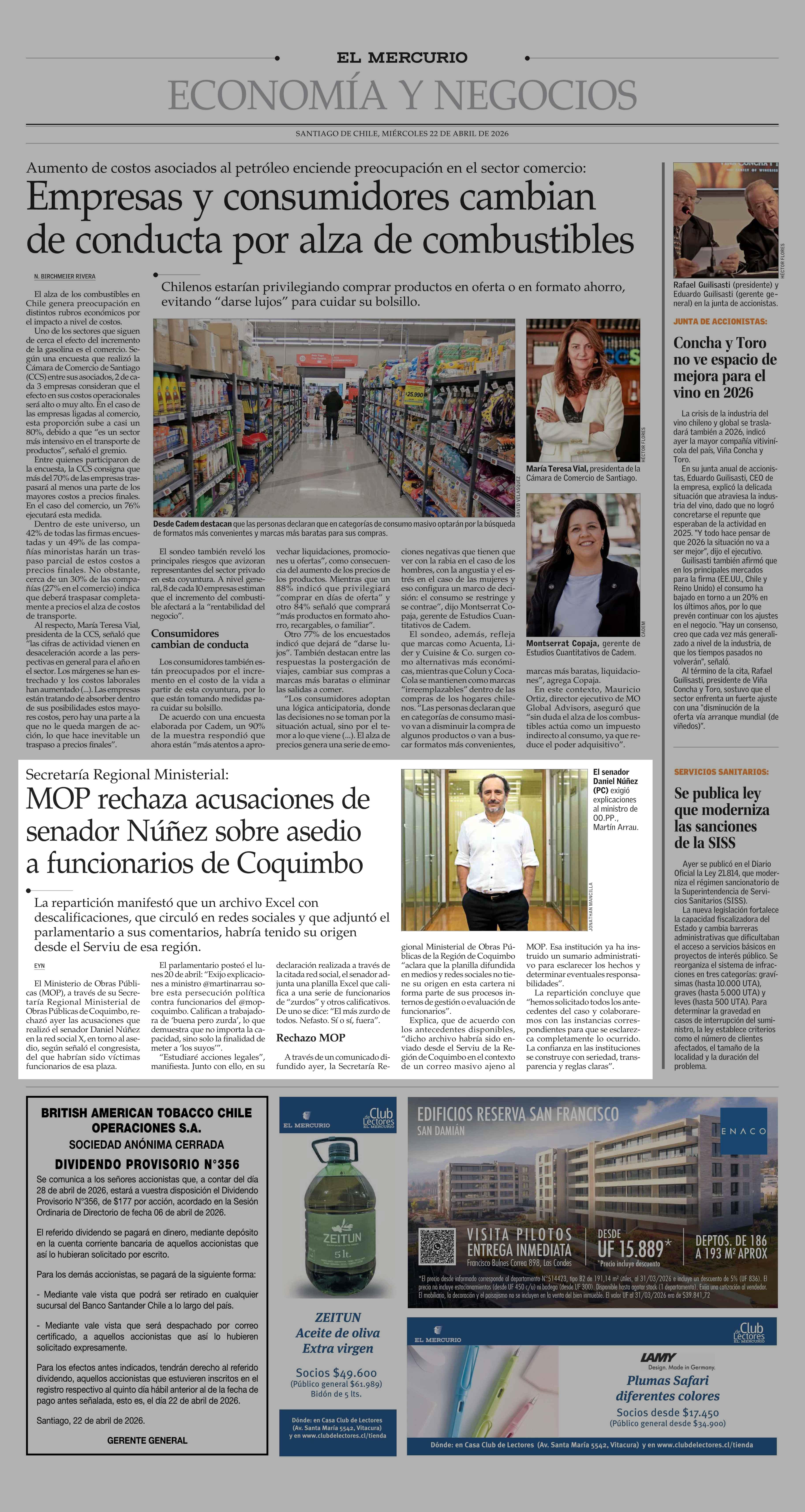 MOP rechaza acusaciones de senador Núñez sobre asedio a funcionarios de Coquimbo 22-04-2026 El Mercurio |
