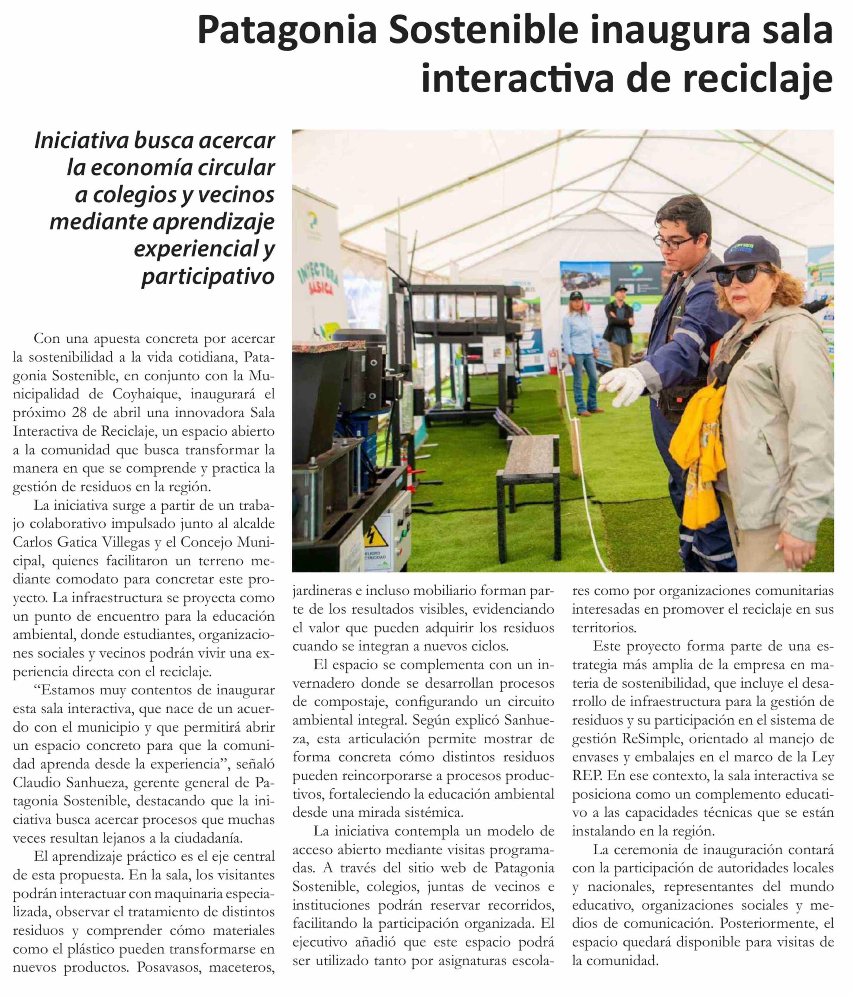 Título: Patagonia Sostenible inaugura sala interactiva de reciclaje