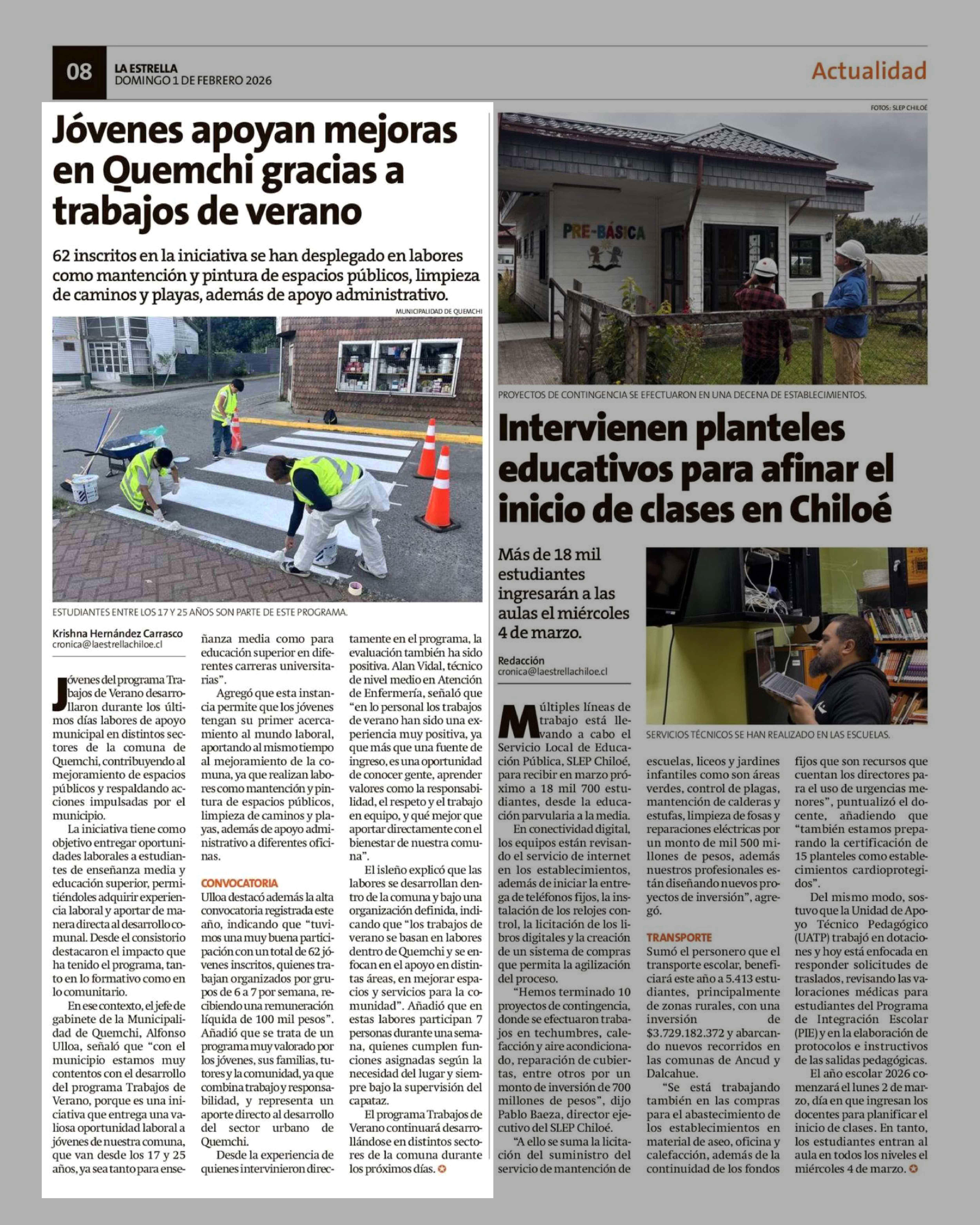 Título: Jóvenes apoyan mejoras en Quemchi gracias a trabajos de verano
