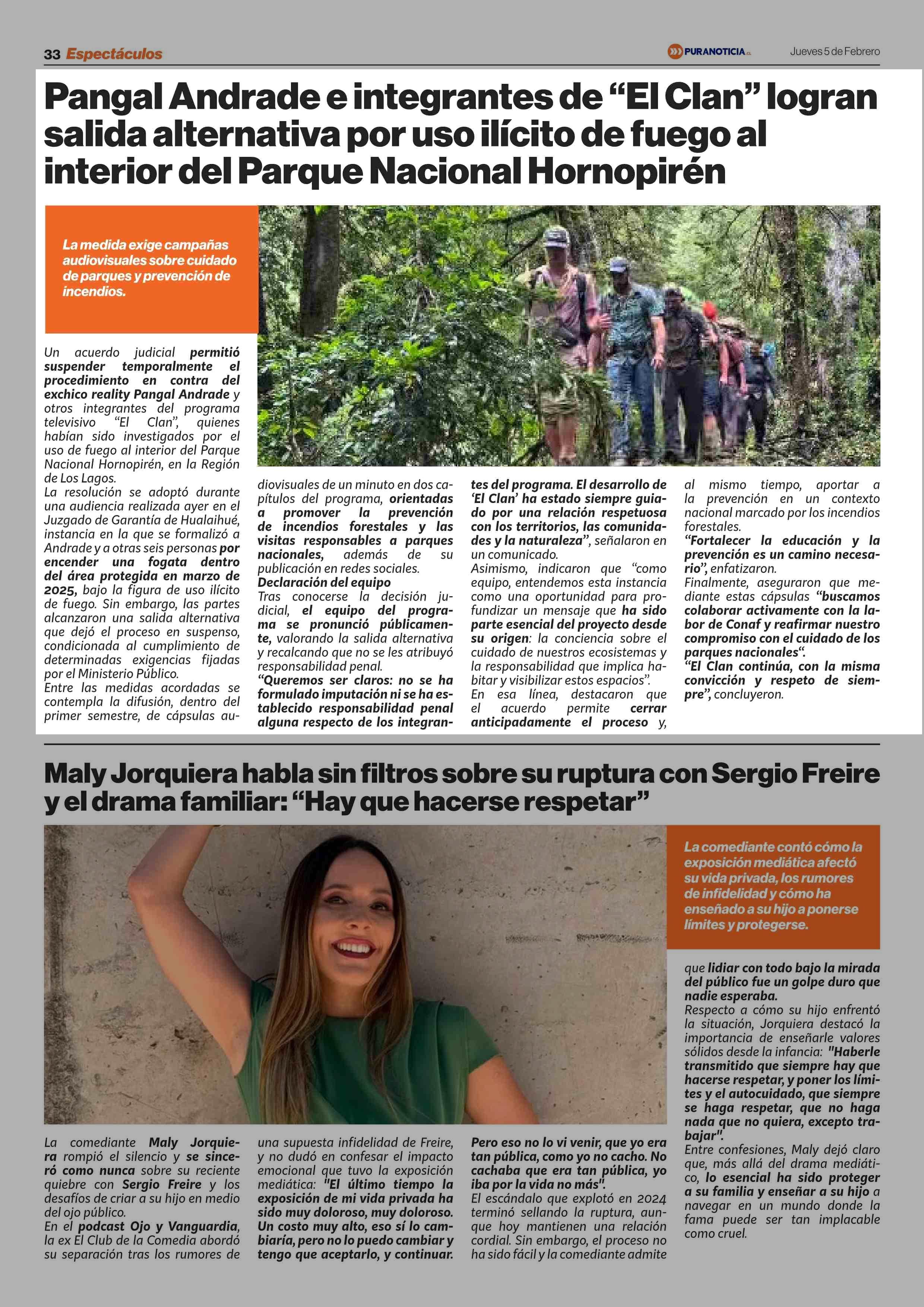 Pangal Andrade e integrantes de “El Clan” logran salida alternativa por usoilícito de fuego al interior del Parque Nacional Hornopirén 05-02-2026 Puranoticia.cl |