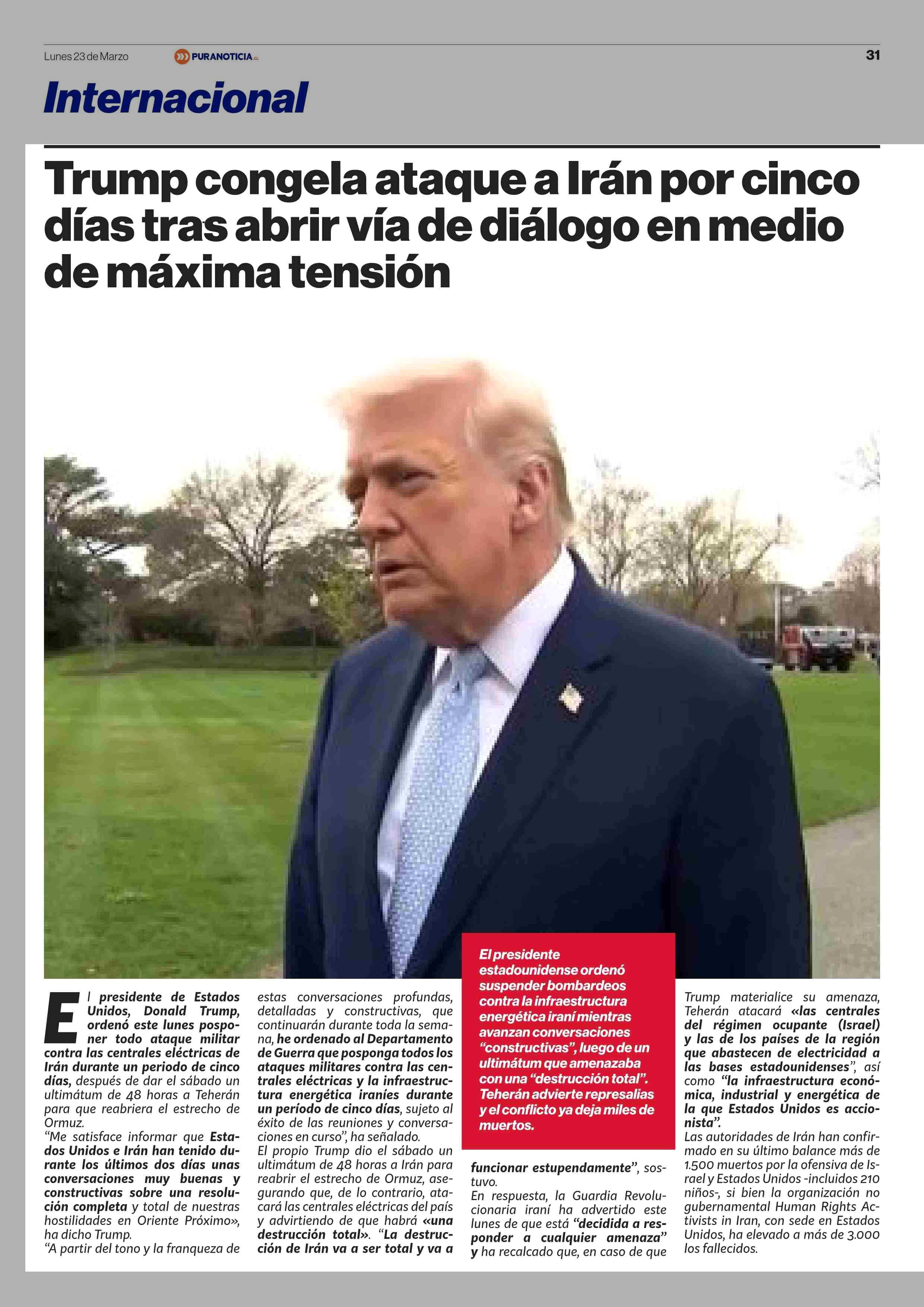 Título: Trump congela ataque a Irán por cinco días tras abrir vía de diálogo en medio de máxima tensión