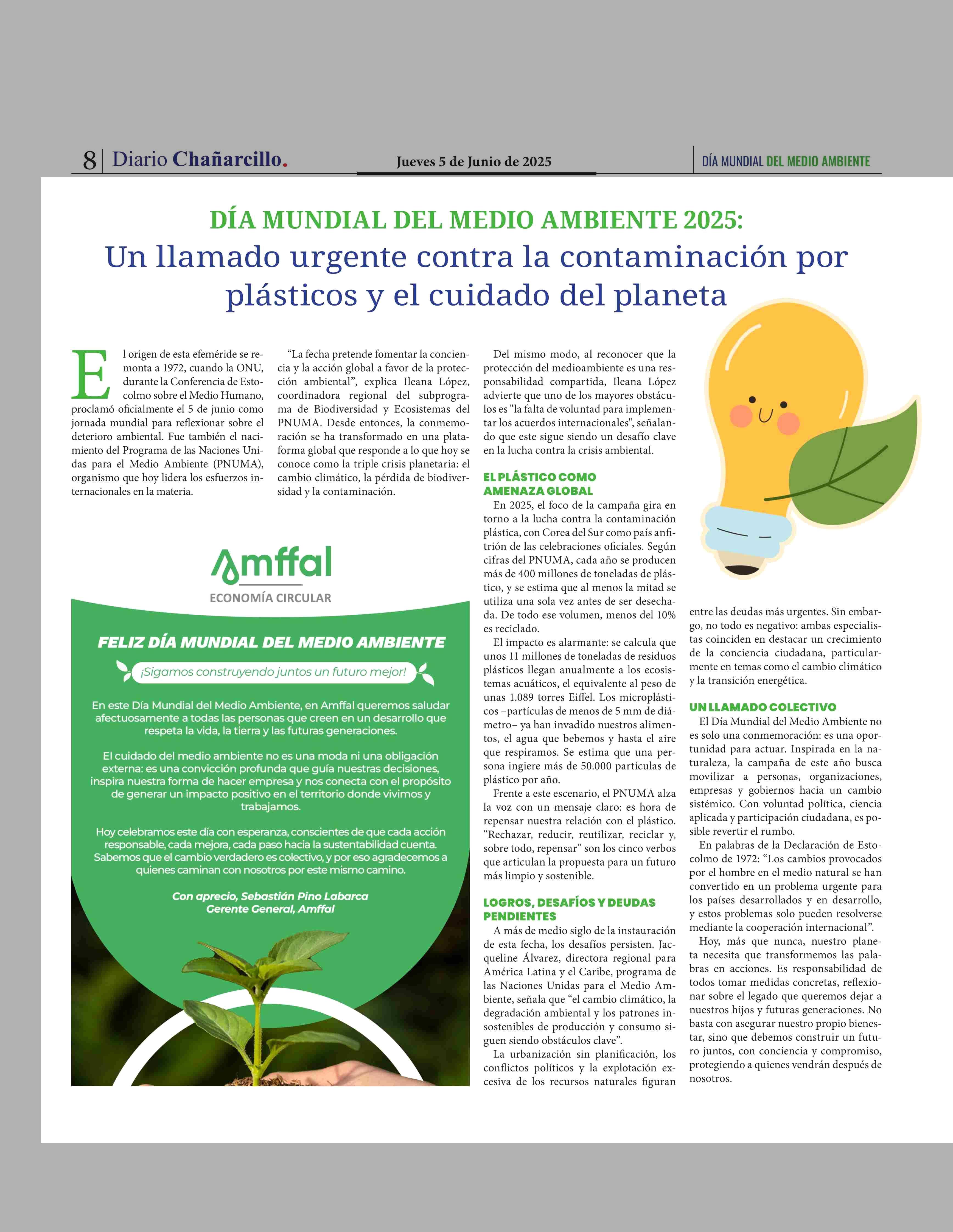 Un llamado urgente contra la contaminación por plásticos y el cuidado del planeta 05-06-2025 Diario Chañarcillo |