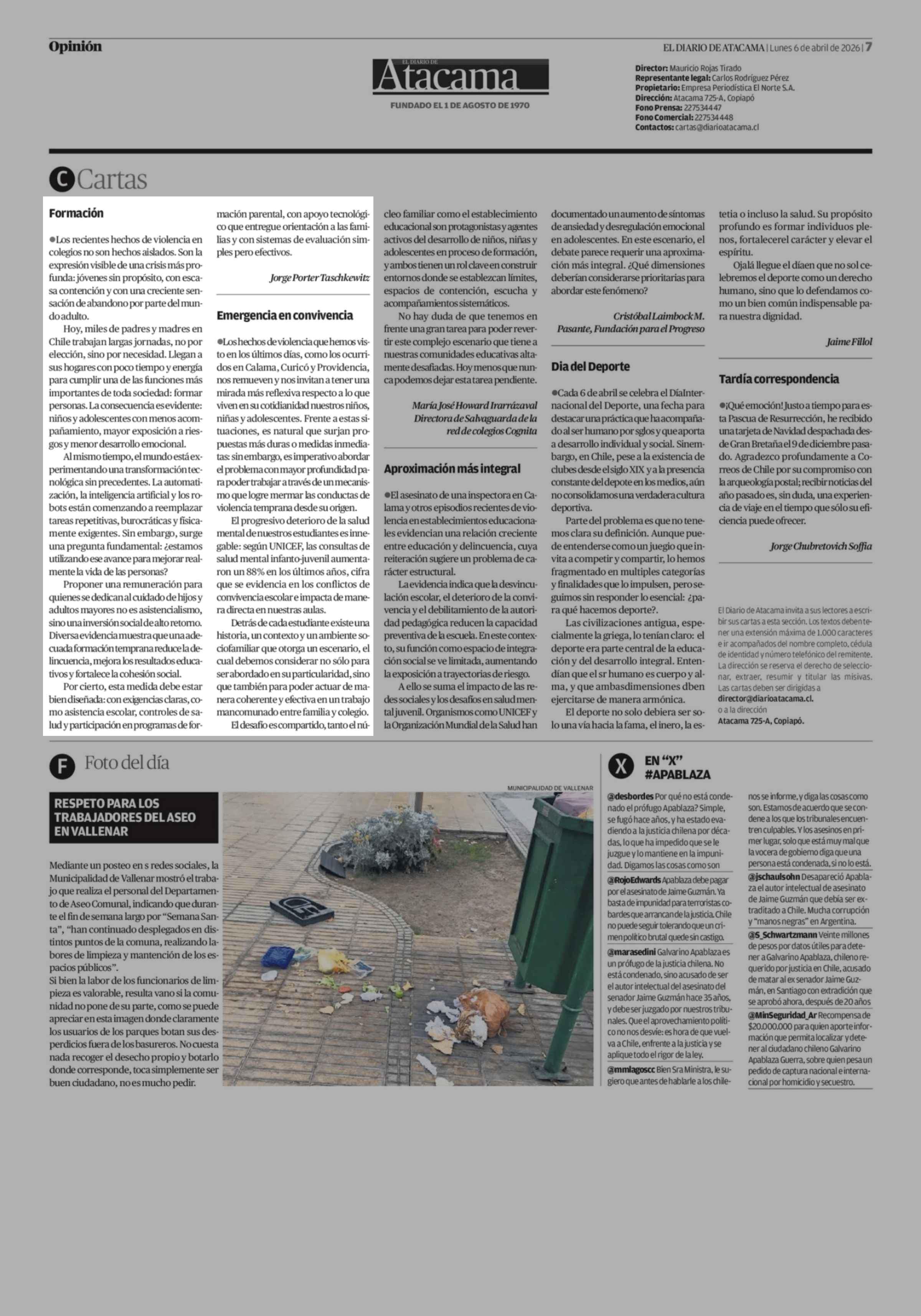Fuente: El Diario de Atacama (El Diario de Atacama) Página(s): 7