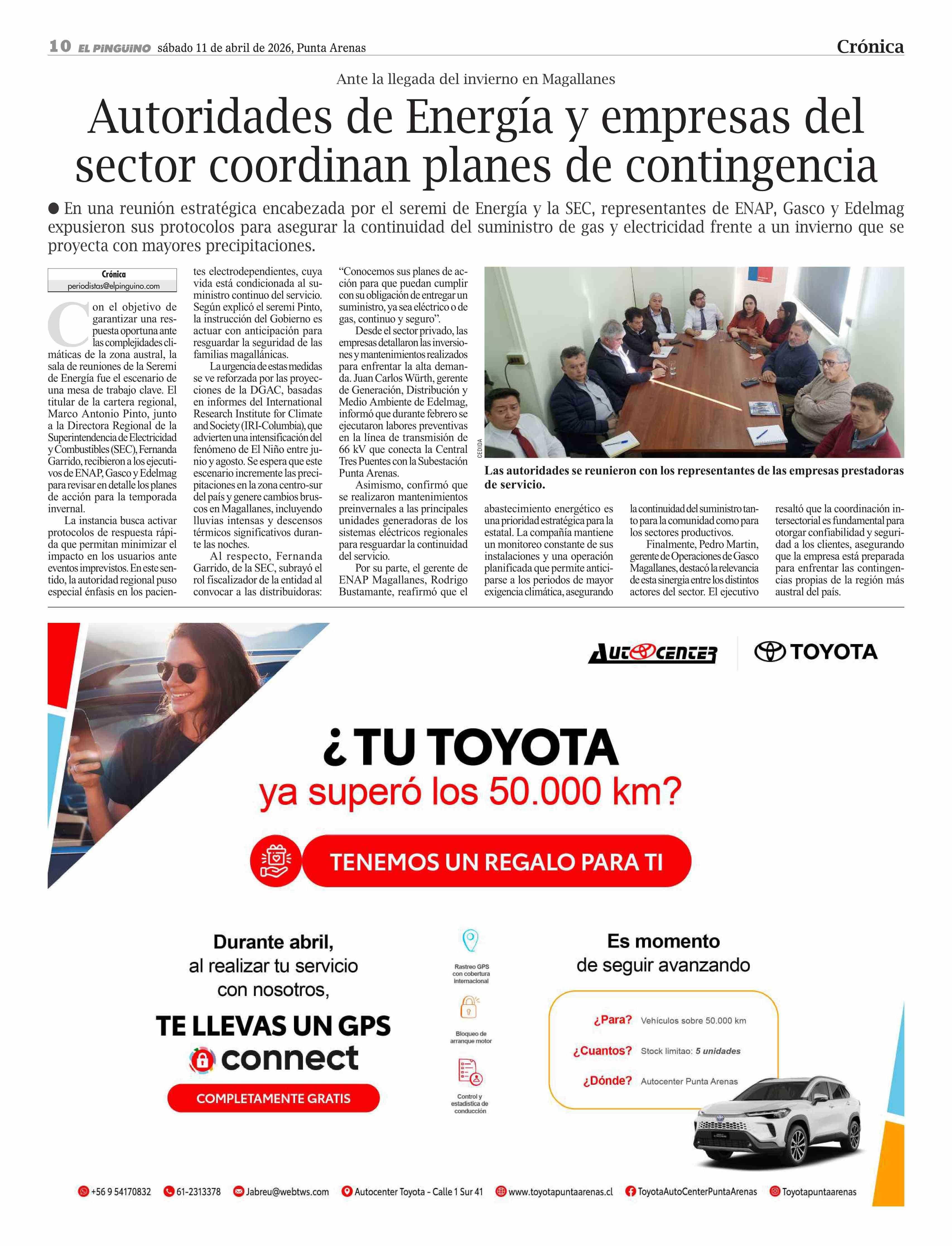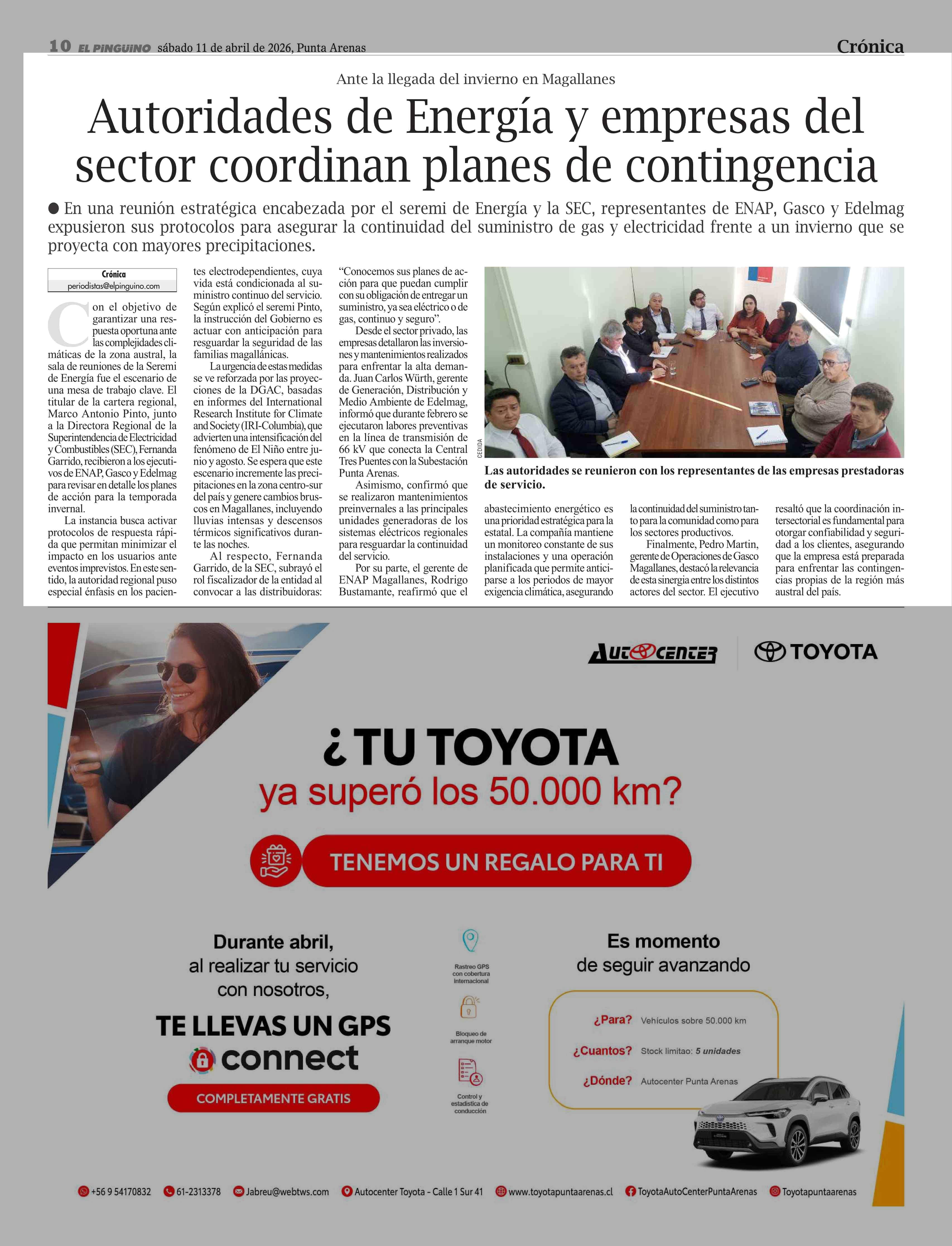 Autoridades de Energía y empresas del sector coordinan planes de contingencia 11-04-2026 El Pingüino |