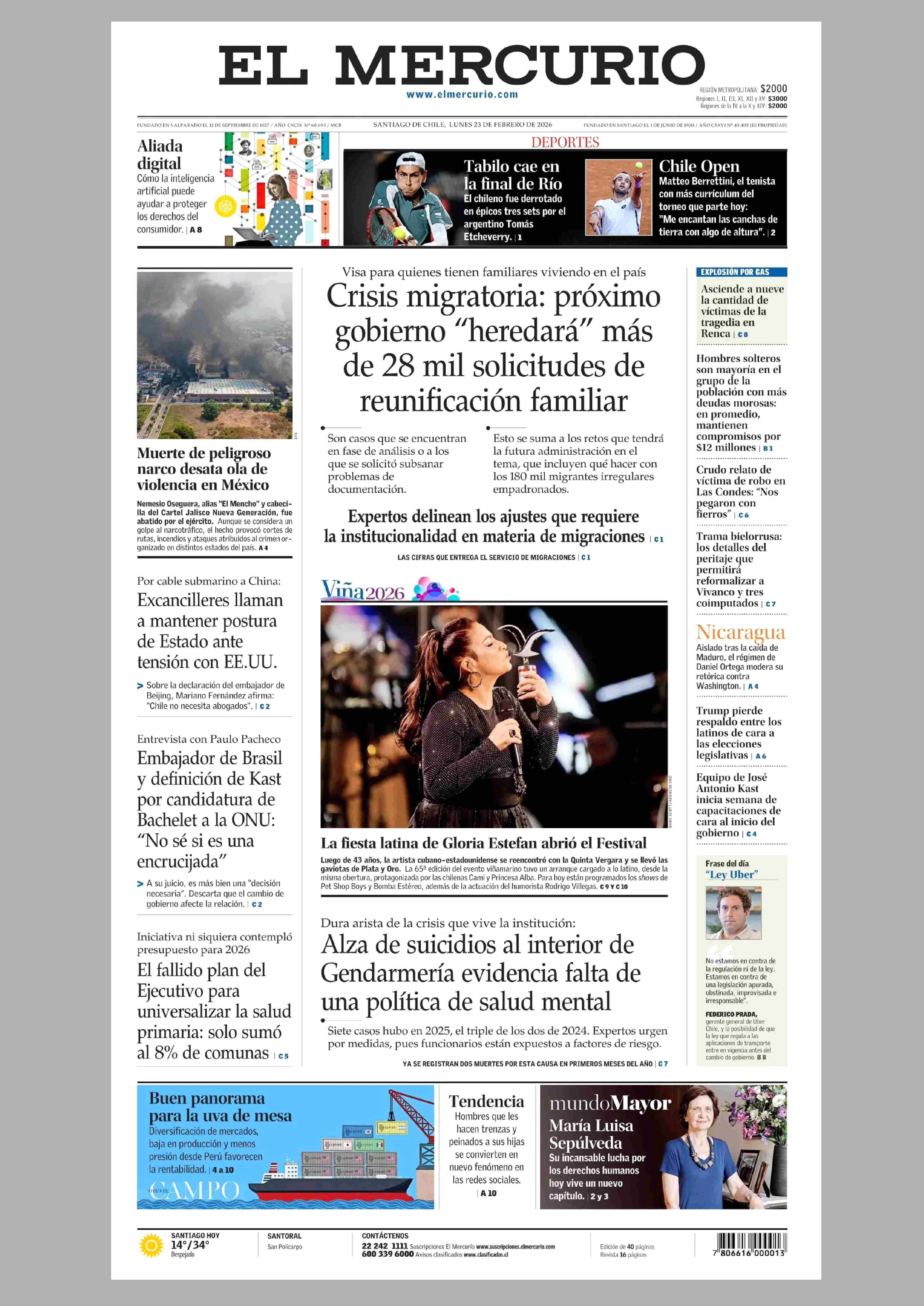 PORTADA EL MERCURIO (A SEGUNDA EDICIÓN) - CHILE 23-02-2026 El Mercurio |