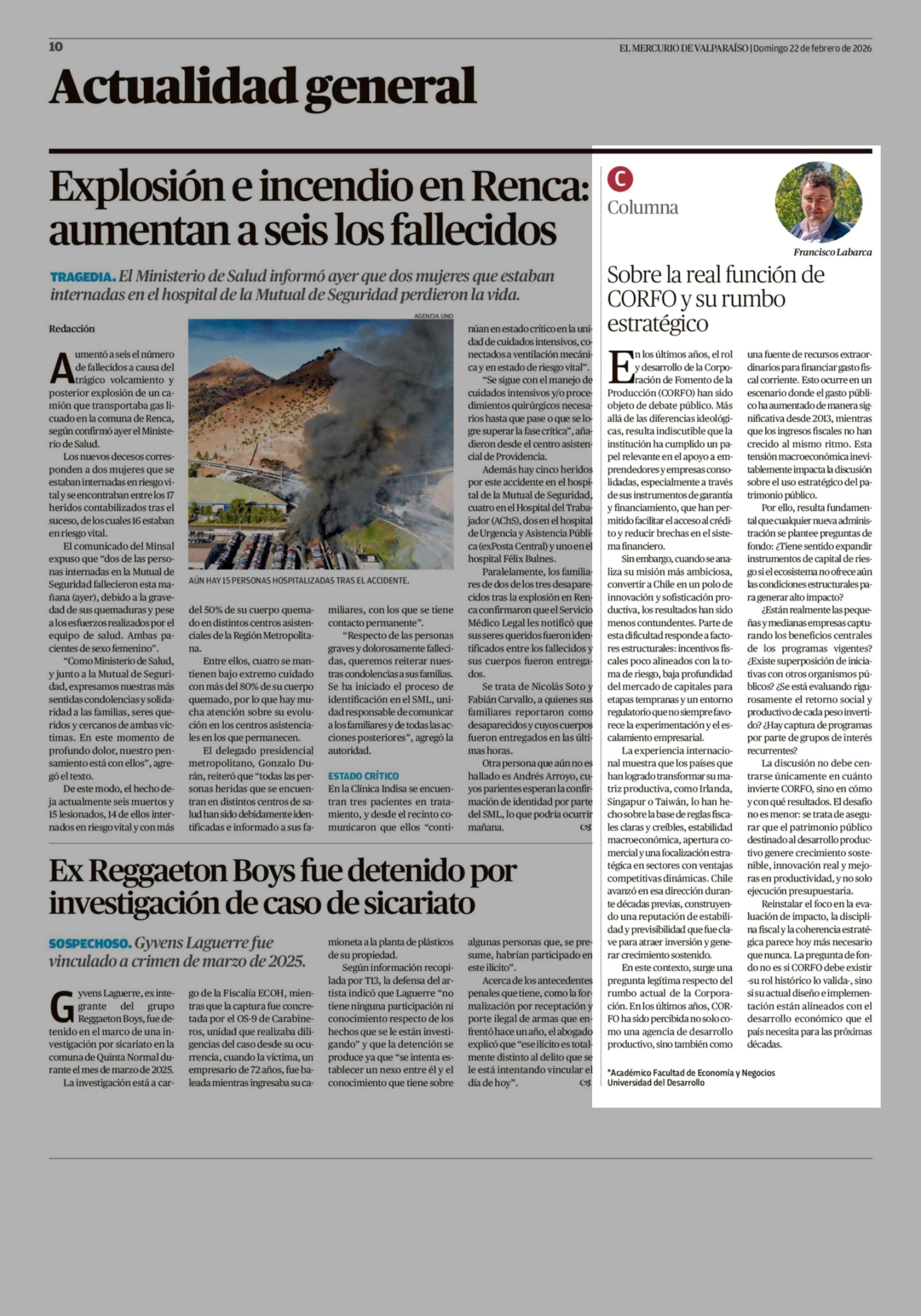 Columnas de Opinión: Sobre la real función de CORFO y su rumbo estratégico 22-02-2026 El Mercurio de Valparaíso |