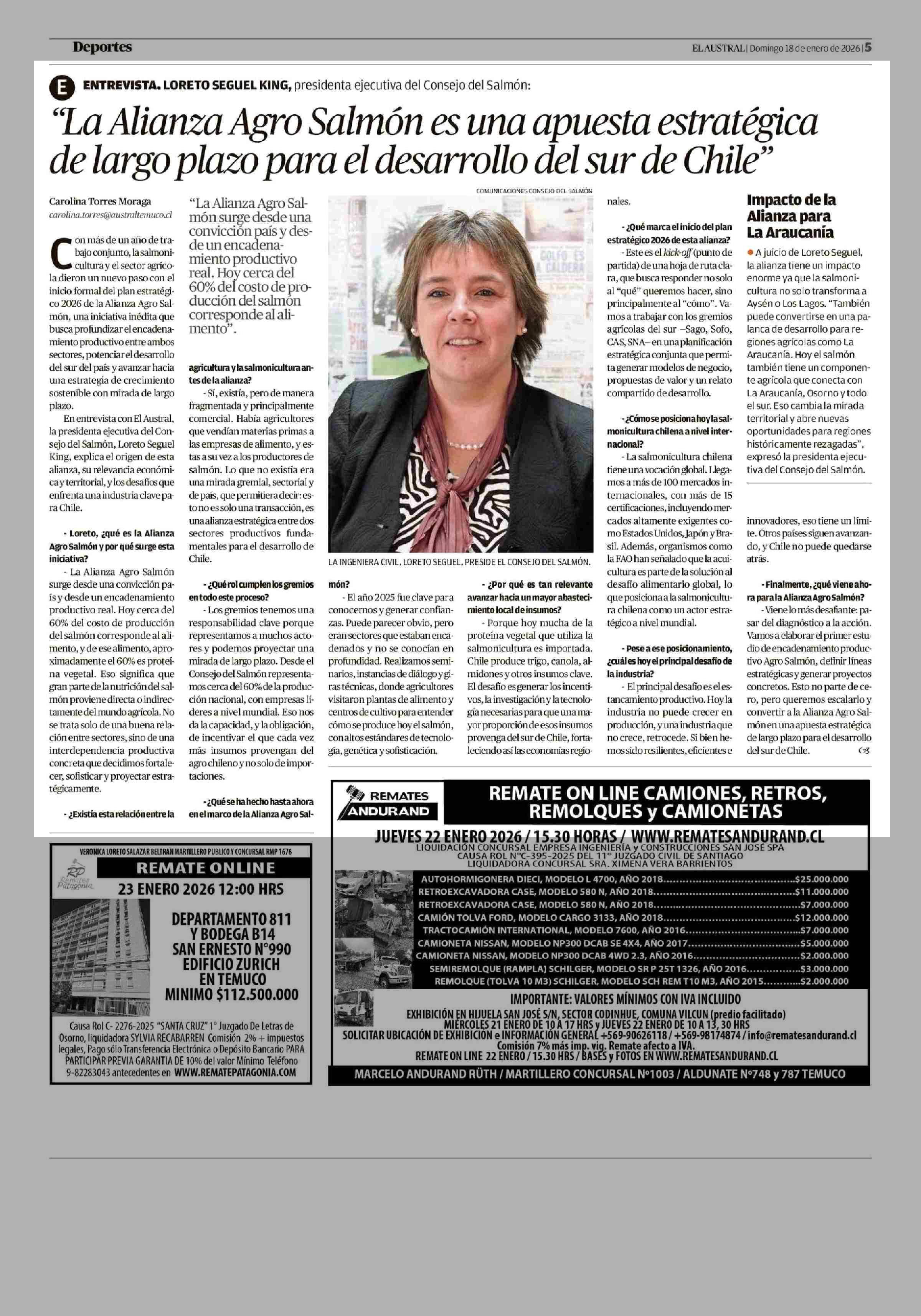 "La Alianza Agro Salmón es una apuesta estratégica de largo plazo para el desarrollo del sur de Chile" 18-01-2026 El Austral de la Araucanía |