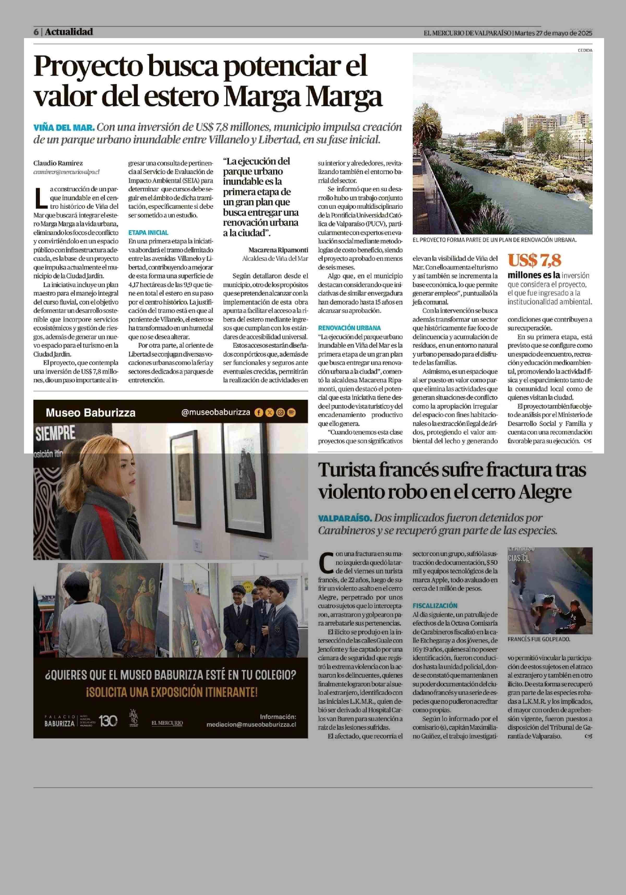 Proyecto busca potenciar el valor del estero Marga Marga 27-05-2025 El Mercurio de Valparaíso |